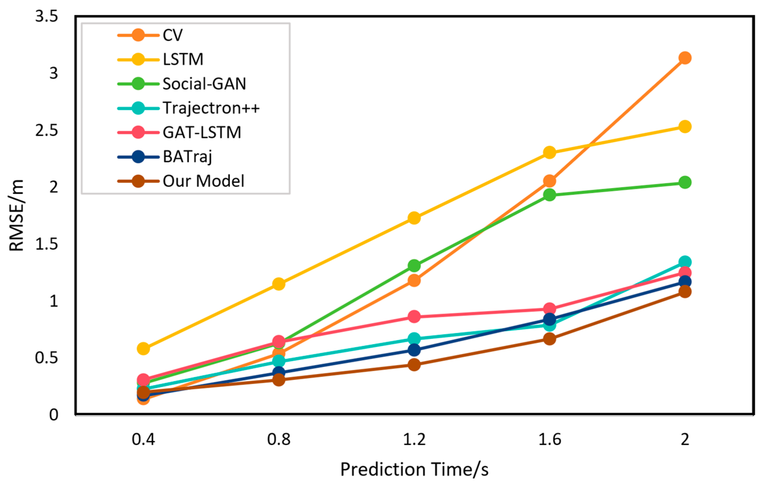 - Zheng, X.; Chen, X.; Jia, Y. Vehicle trajectory prediction based on GAT and LSTM networks in urban environments. Promet-Traffic Transp. 2024, 36, 867–884. [Google Scholar] [CrossRef]
