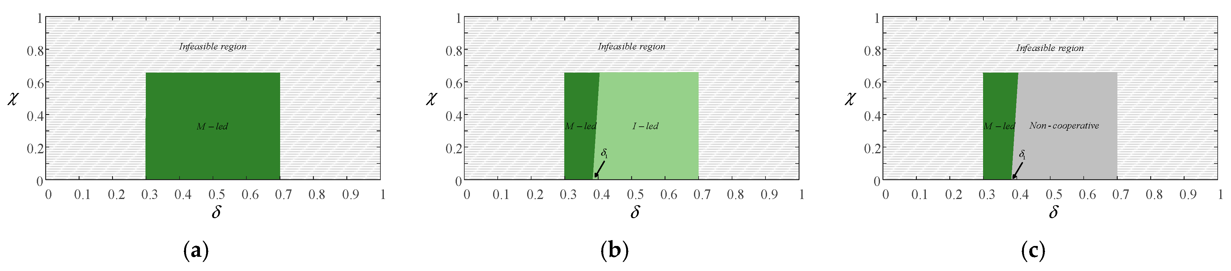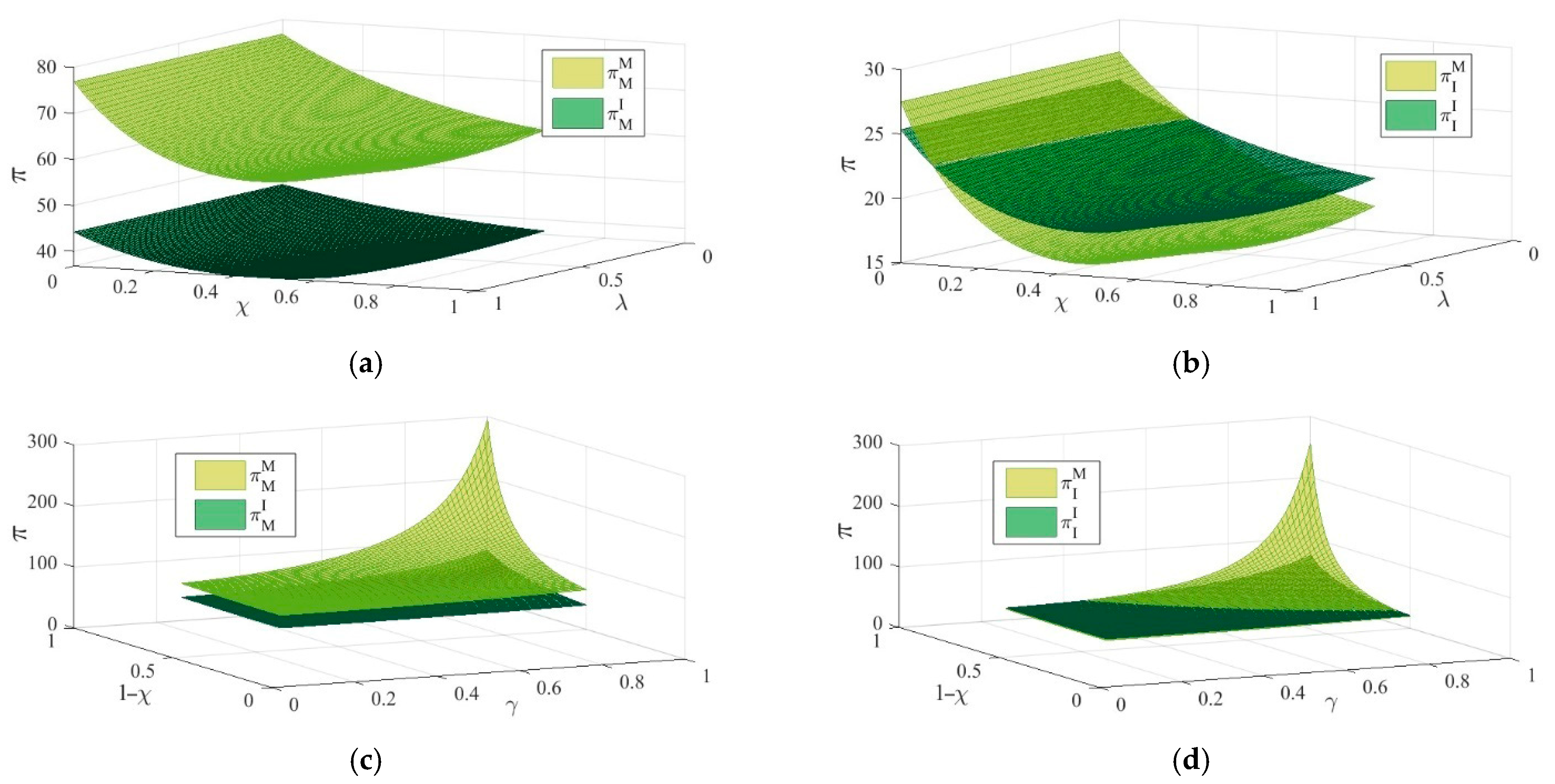 - When considering the impact of government subsidies on the choice of the trade-in model, the manufacturer tends to lead the trade-in cooperation when their subsidy support is stronger and the product quality decay rate is high. When both parties receive equal subsidy support, they also prefer manufacturer-led trade-in arrangements when the product quality decay rate is low. However, if the retail platform’s subsidy support is greater, the supply chain members are unable to reach a cooperative agreement.