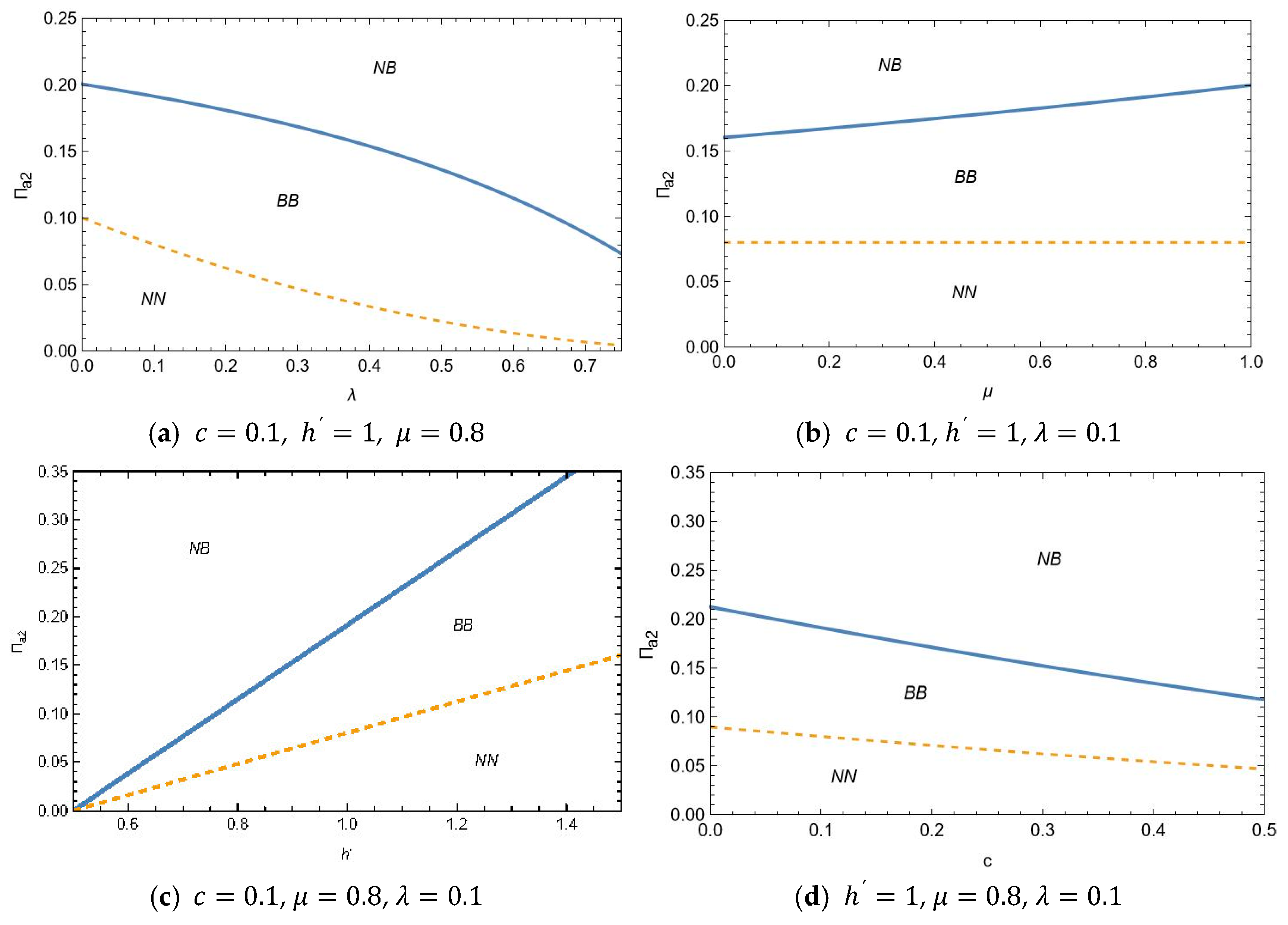 Relative to Shen et al. [1], who study permissioned blockchain to deter copycats in a supply chain, we focus on deceptive counterfeits that can still enter the channel before data capture (“source counterfeiting”) and on vertical quality differentiation between two authentic firms. Pun et al. [29] highlights that blockchain is useful under intermediate distrust; our analysis complements theirs by endogenizing adoption timing in duopoly and showing when NB (premium adopts; standard does not) dominates NN and BB under quality and fee thresholds. Zhu et al. [30] examines dual-channel dominance by a brand owner and document free-rider issues; we obtain a distinct free-ride spillover where the standard firm benefits when the premium rival adopts first (Proposition 6). Finally, Li et al. [32] connect channel selection with blockchain; we hold channels fixed and instead explore source-counterfeit security μ as a lever shaping prices, demands, and welfare across scenarios. Together, these differences clarify the niche our model fills.
