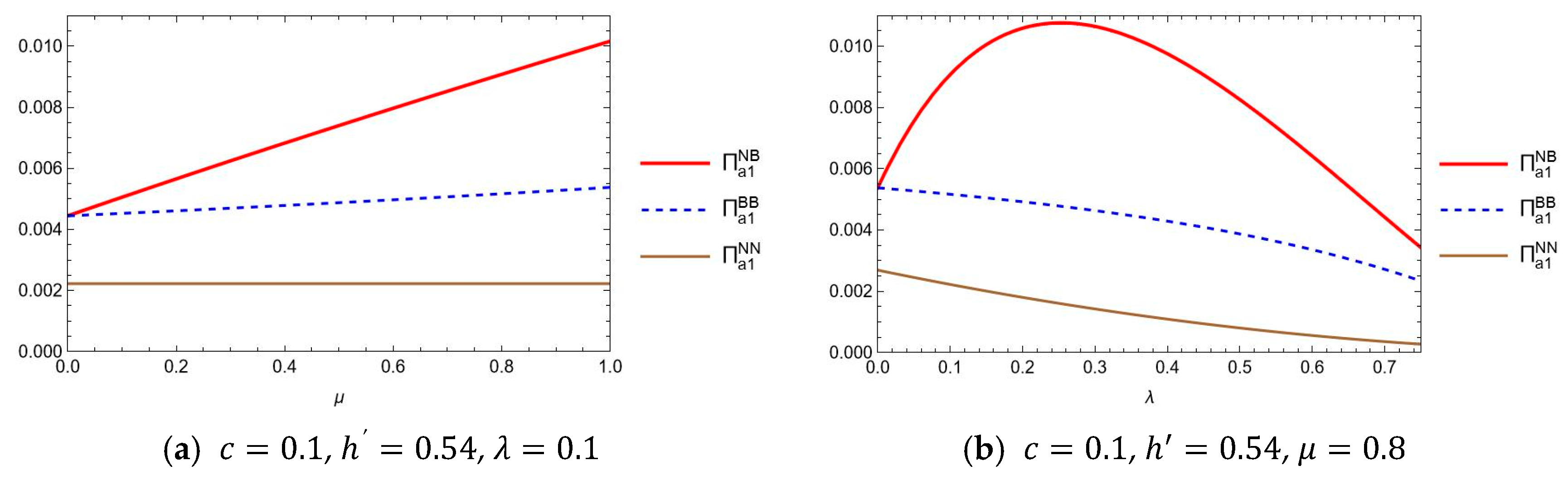 The equilibrium results are p a N * = 1 4 2 + 2 c λ + λ δ d and Π a N * = 1 λ 2 + 2 c + λ λ δ d 2 8 2 + λ 1 + δ d .