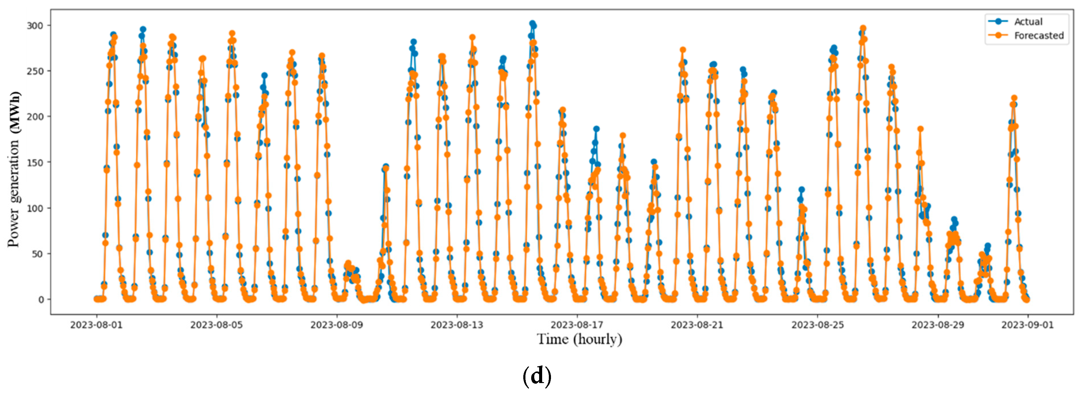 - Kim, E.; Akhtar, M.S.; Yang, O.-B. Designing Solar Power Generation Output Forecasting Methods Using Time Series Algorithms. Electr. Power Syst. Res. 2023, 216, 109073. [Google Scholar] [CrossRef]