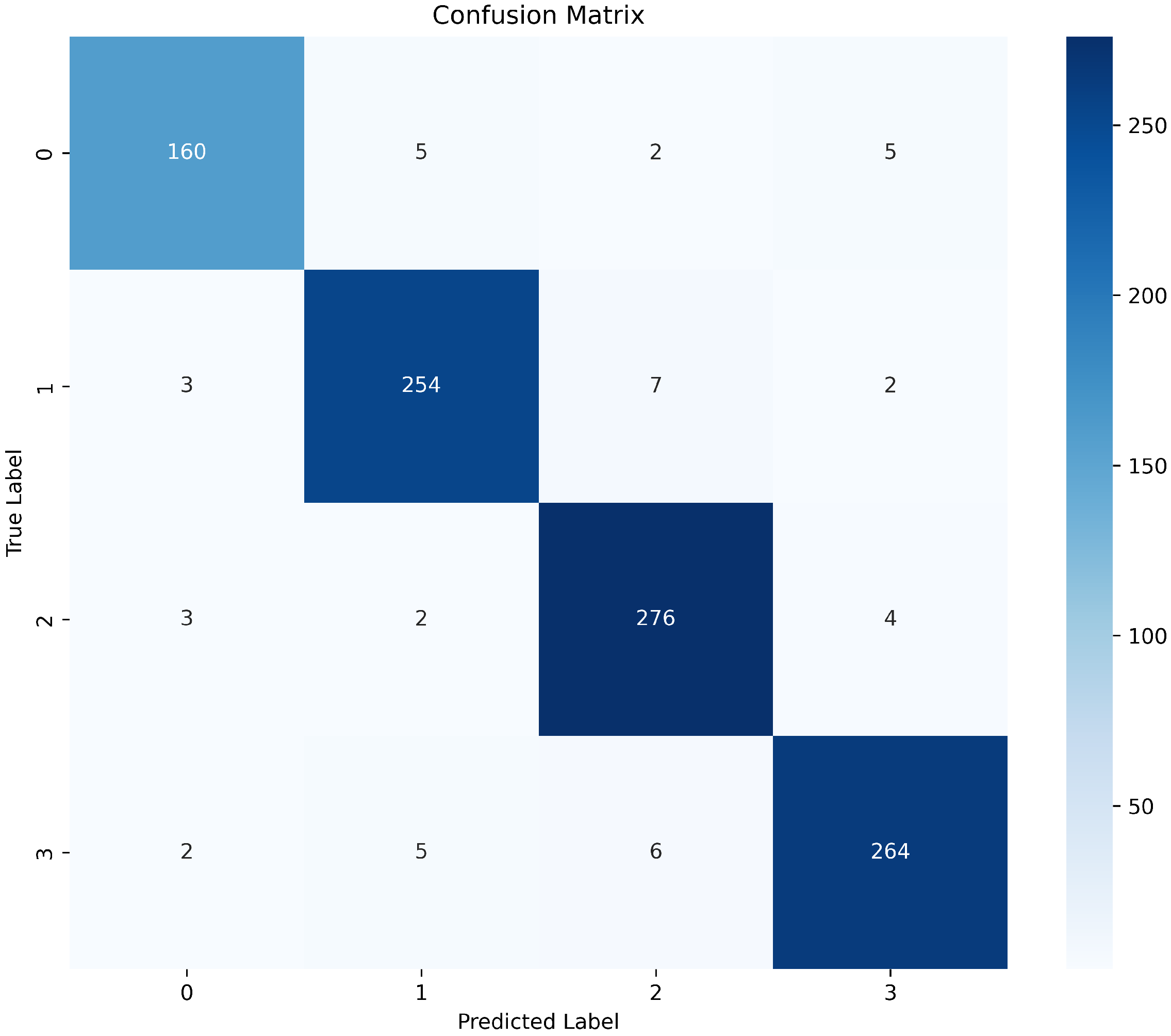 24]. To visualize how predictions aligned with ground truth, we generated a confusion matrix—a standard evaluation tool in multi-class classification that shows true positives on the diagonal and exposes off-diagonal misclassifications [