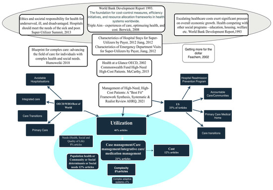 Historical papers included The World Bank Development Report, 1993 [20], OECD [21,22], Getting More for the Dollar [22], Kaiser Permanente 2002 [23], and the World Health Organization Report, 2004 [24]. Other landmark articles included the Super-utilizer Summit [25], and the Triple Aim 2008 [26], the role of the hospital in a changing environment [27], and Blueprints for Complex Care [28]. The themes of these papers emerged as the context of the term, Super-utilizer, with the earliest published use of the term by Jiang et al. in 2012 [1,2].