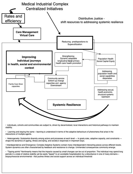The following questions are addressed in this paper: What is ‘Super-utilization’ and how it has been framed in the literature over time, and what underlying assumptions have guided its framing? What types of interventions have been implemented to reduce Super-utilization, and how effective are they in shifting utilization patterns, improving patient outcomes, and addressing social determinants of health? To what extent do existing interventions and evaluations incorporate systems-thinking, complexity theory, and the lived experience of high-need, high-cost populations reflecting distributive justice? How would complexity-informed models of care move toward improved equity and patient-centered outcomes in high-need/high-cost populations?