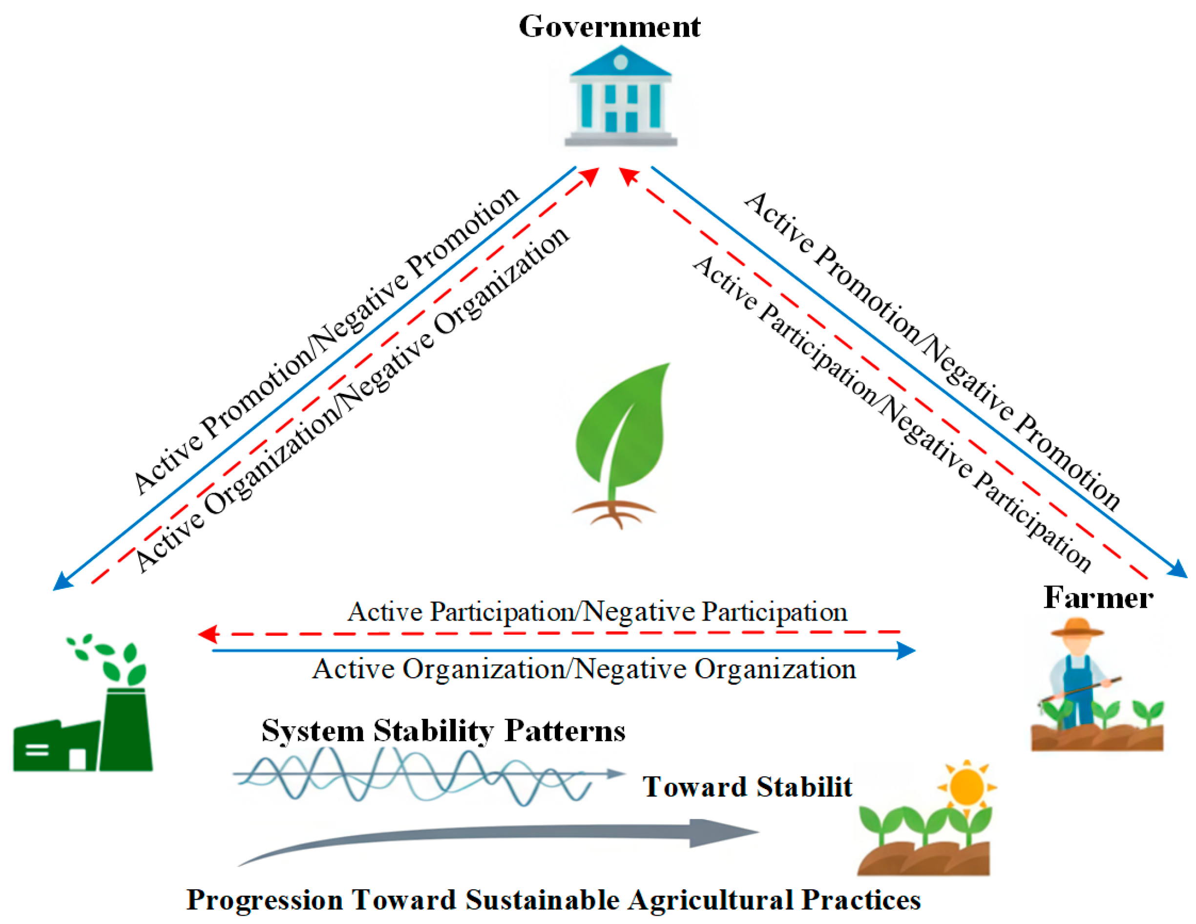 - Limitations and future work. The Conclusions explicitly acknowledge the current study’s scope and remaining gaps. First, although the model captures patterns observed in practice (e.g., unstable enterprise participation), full empirical validation using longitudinal policy and market data is identified as a priority for future research. Second, the present model focuses on three stakeholders—government, enterprises, and farmers—and does not yet incorporate other influential actors such as financial institutions, downstream retailers, or consumers. Third, region-specific heterogeneity in China is not yet parameterized. These issues are now clearly identified as directions for subsequent work.