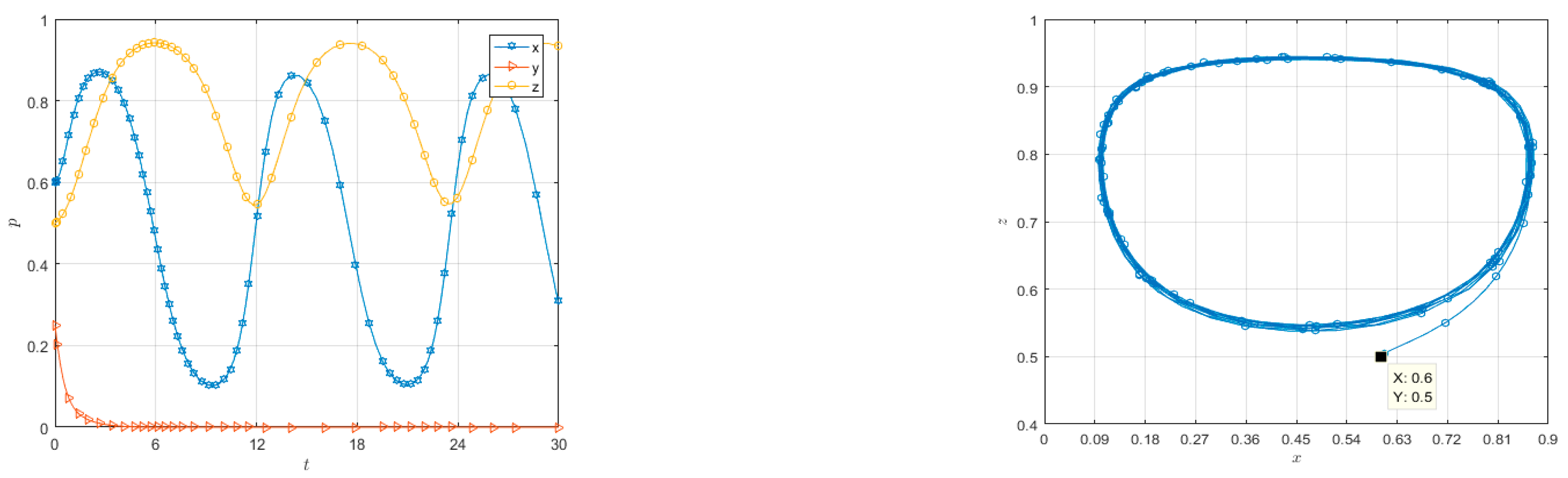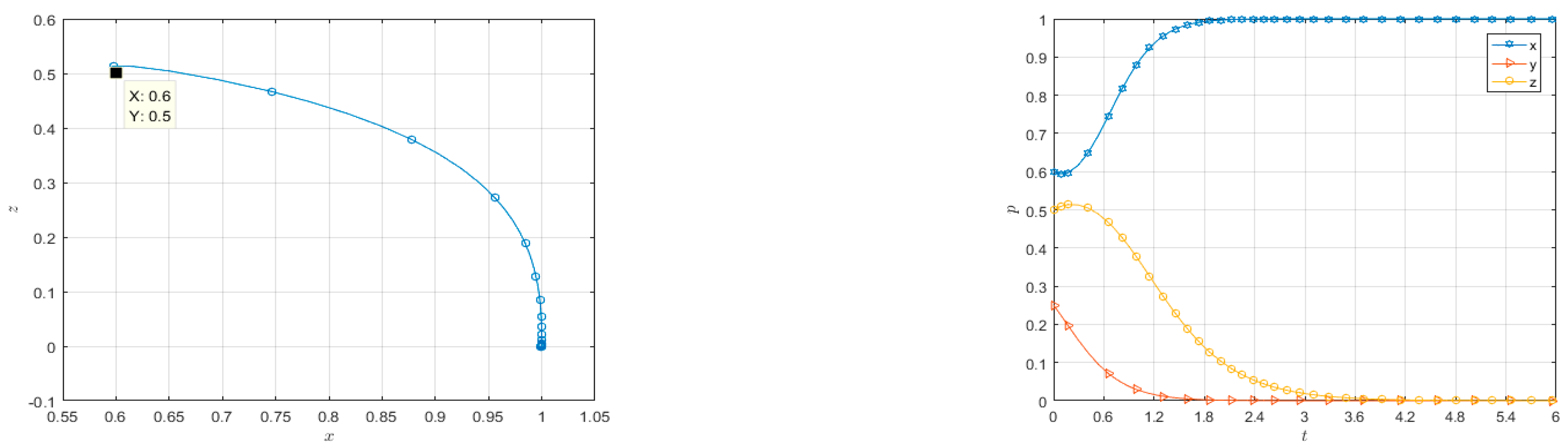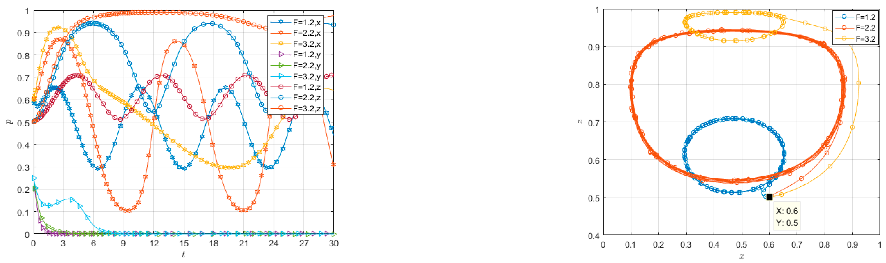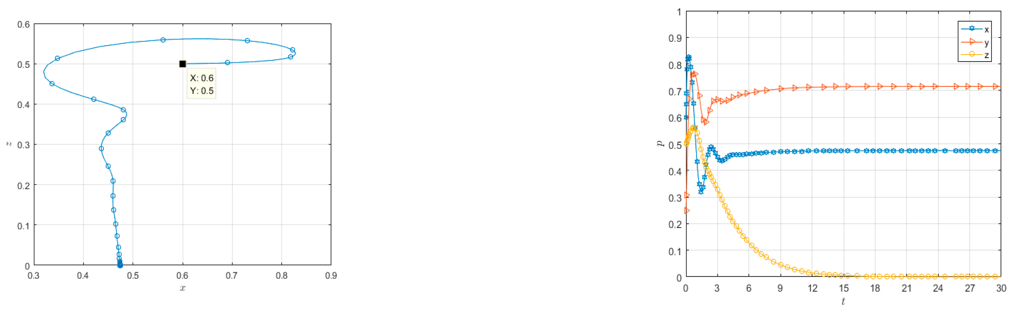 4.2. Numerical Simulation of Three-Party Evolutionary Game
