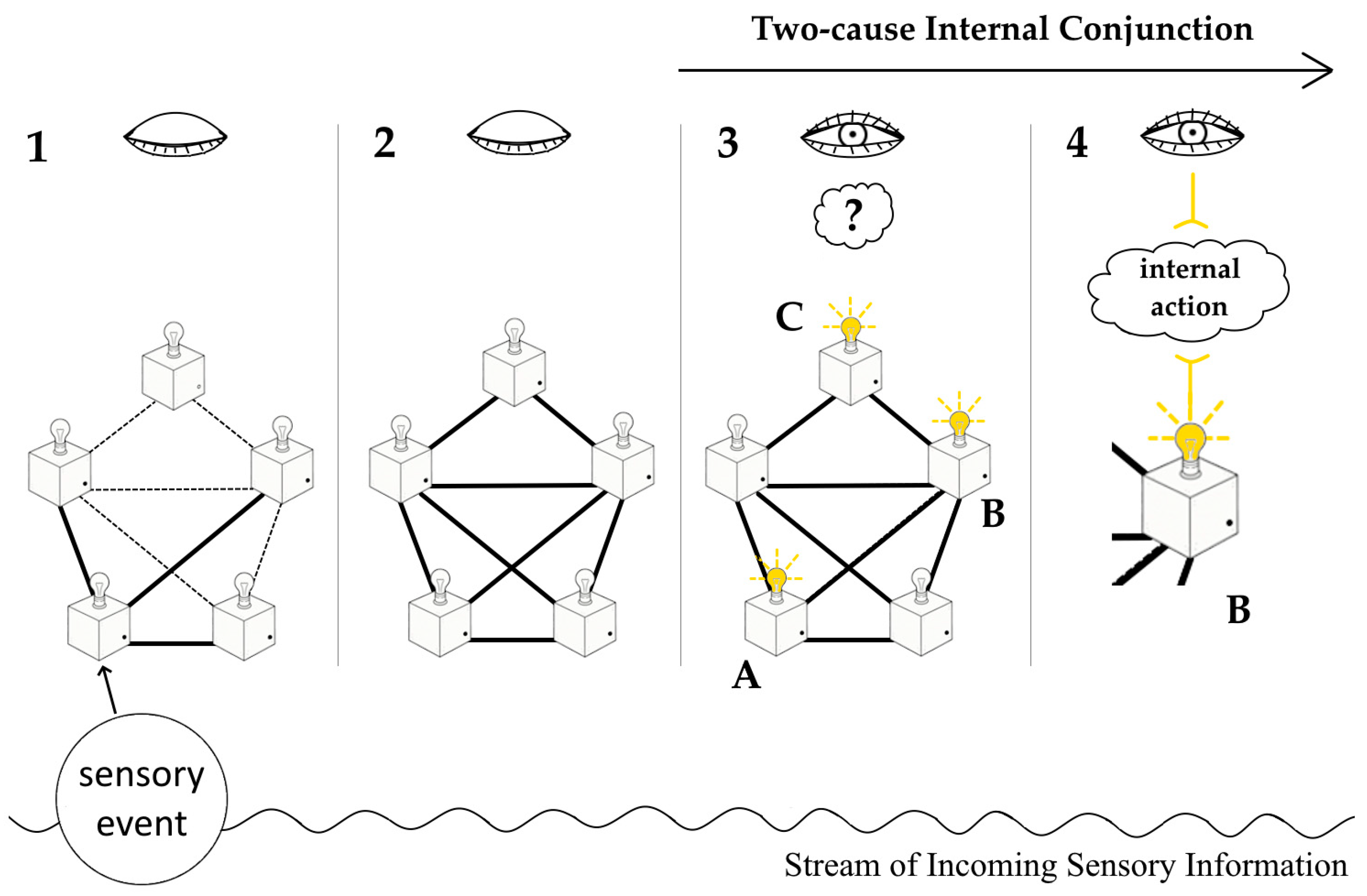 - Two-Cause Internal Conjunction (TIC): A conscious experience that is due to the simultaneously occurring phenomena of an internal action and information provisioning by an Automatic Unconscious Process.