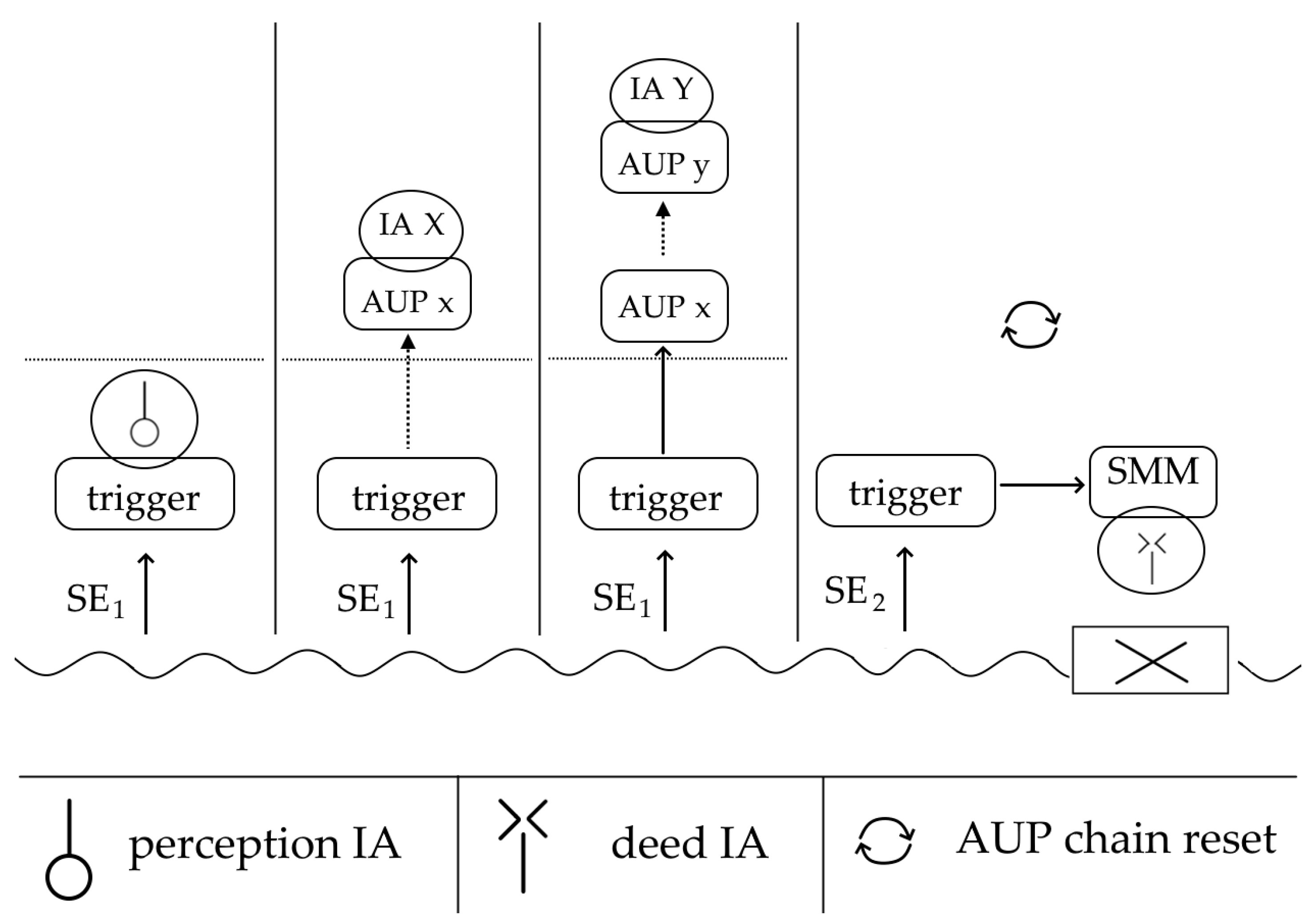- Reset of an AUP chain: Circular arrows representing a refresh.