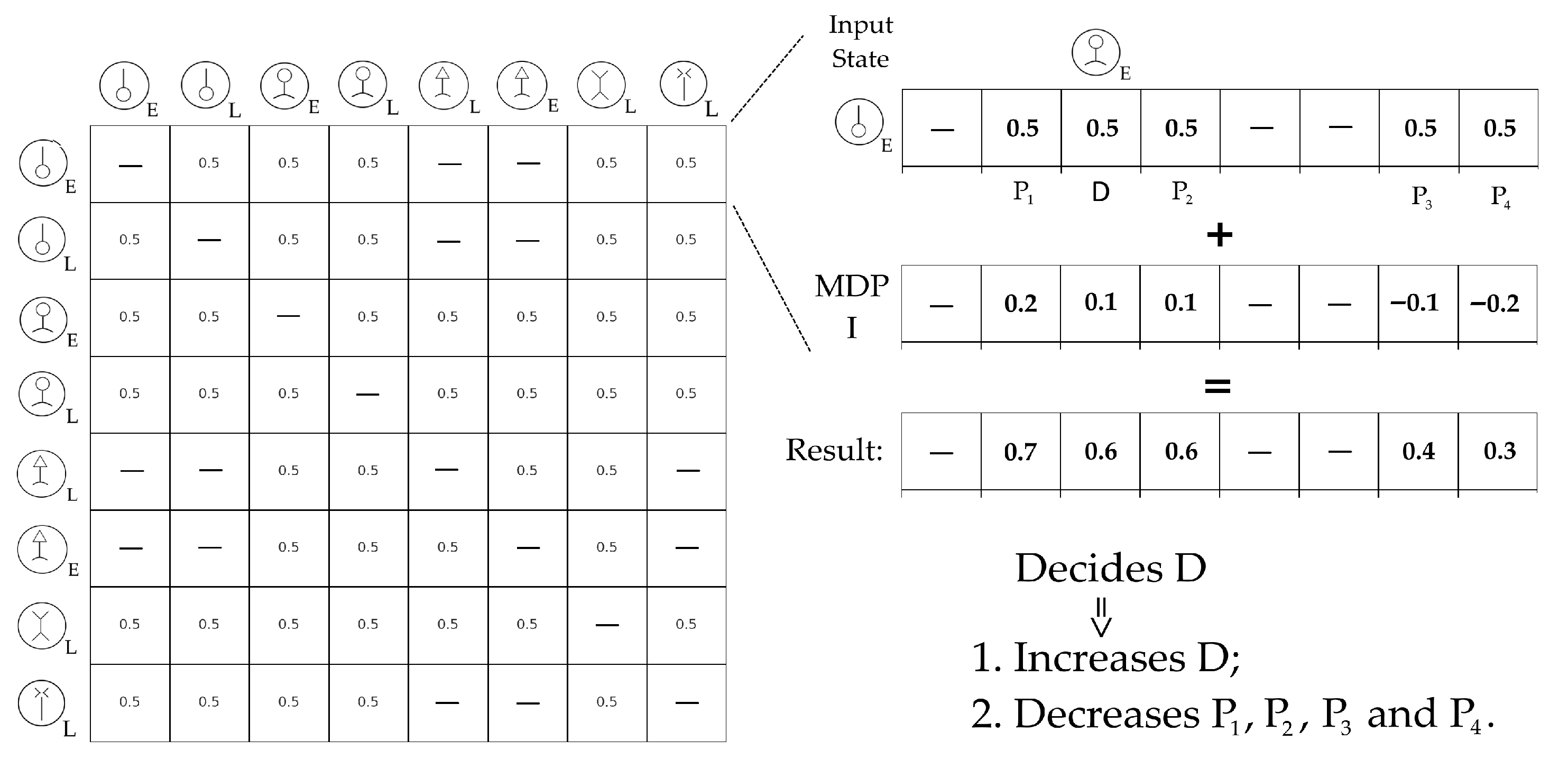 - van Otterlo, M.; Wiering, M. Reinforcement Learning and Markov Decision Processes. In Reinforcement Learning; Springer: Berlin/Heidelberg, Germany, 2012; pp. 3–42. [Google Scholar]