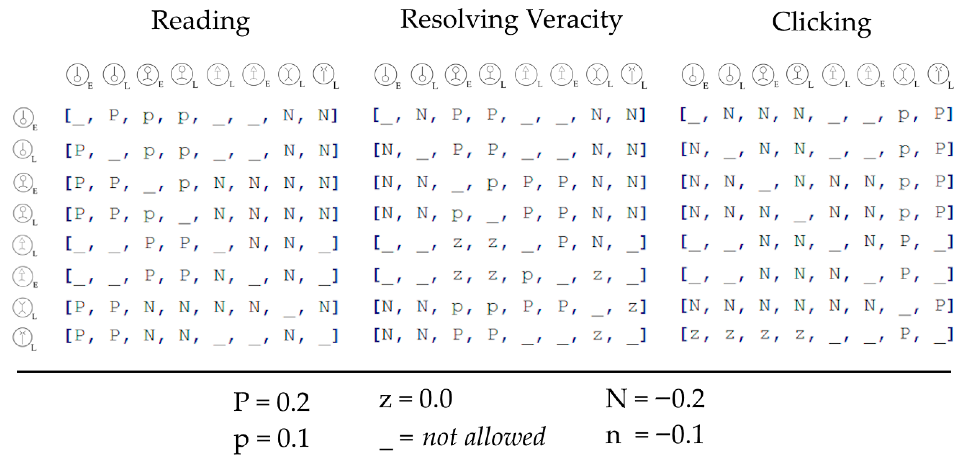 - Parameter 6: The IA that leads to completing a single veracity-resolving goal was set to be the regulation entitative IA for all simulations.