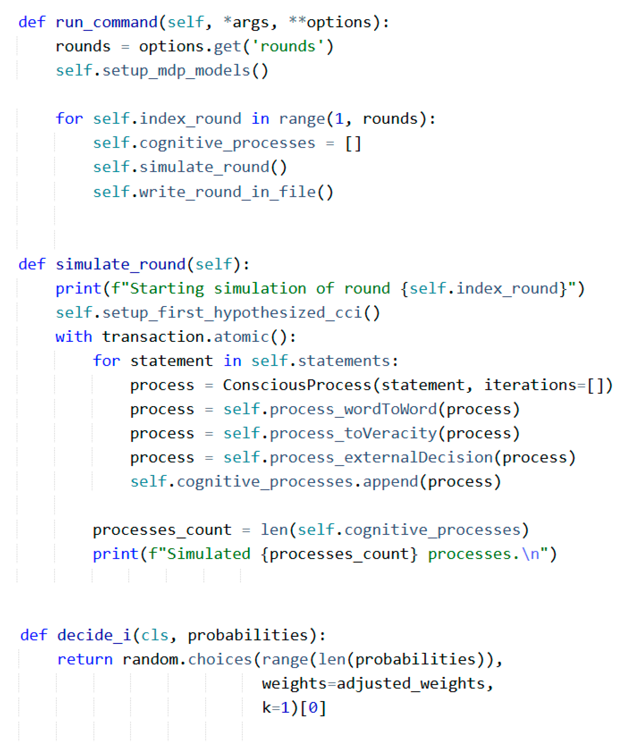 - Parameter 2: A list of 10 strings representing the statements, which means that a single simulation involves the reproduction of 100 trials. The statement list contained one string with 20 words, one with 18, two with 17, and six with 19 words.