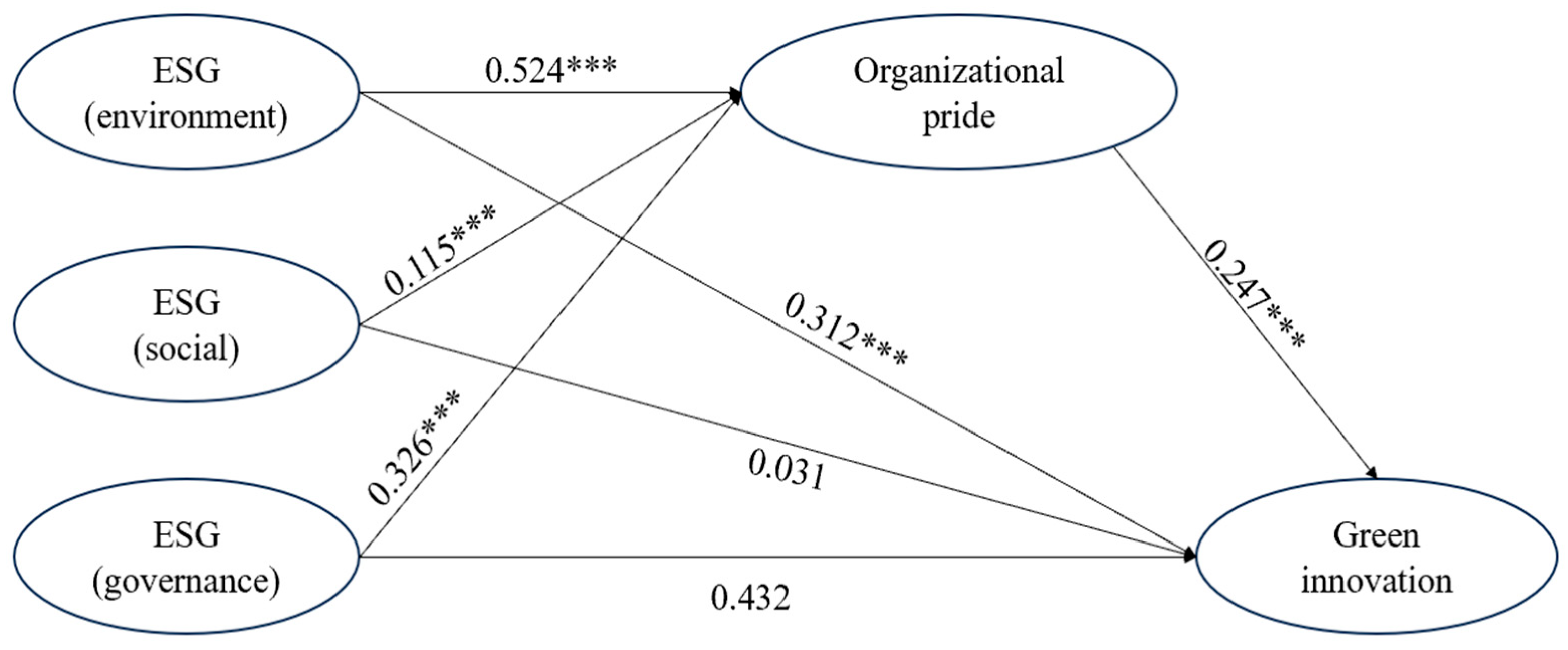 APA StyleZhang, X., Li, Y., & Kim, H. (2025). ESG Practices and Green Innovation: The Mediating Role of Organizational Pride and the Moderating Effect of Innovation Climate. Systems, 13(11), 986. https://doi.org/10.3390/systems13110986