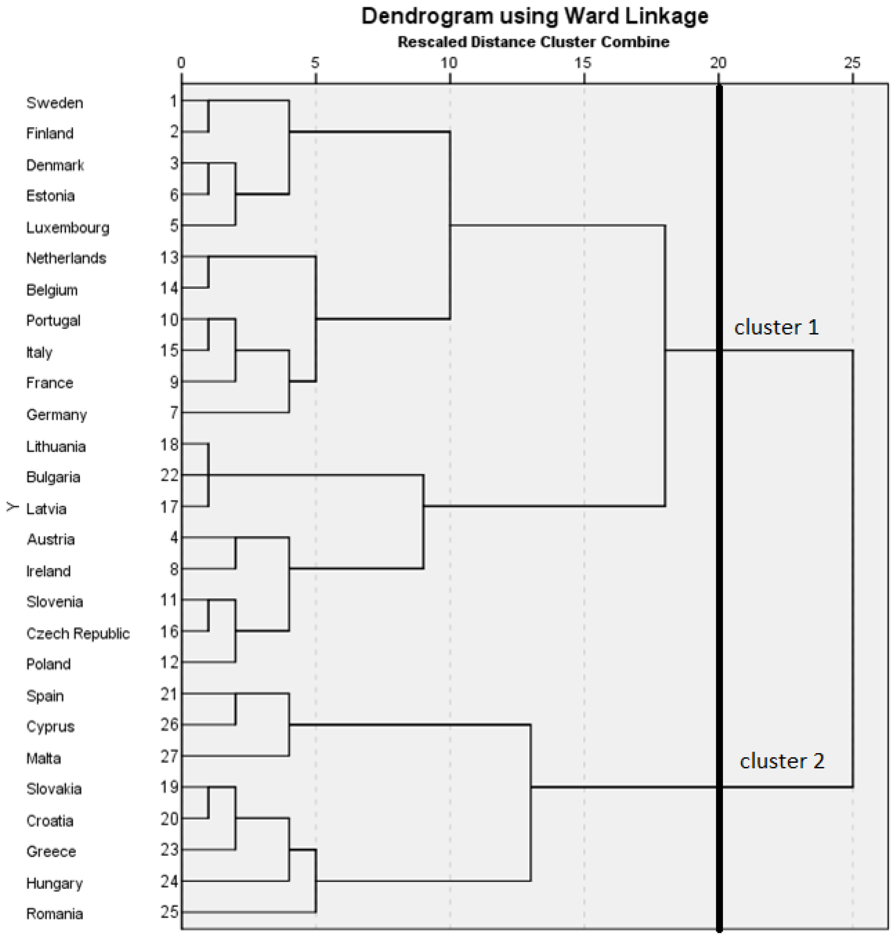 Table 3). This analysis enabled the identification of country groupings that exhibit similar characteristics within the examined context, while at the same time differing from one another across clusters.