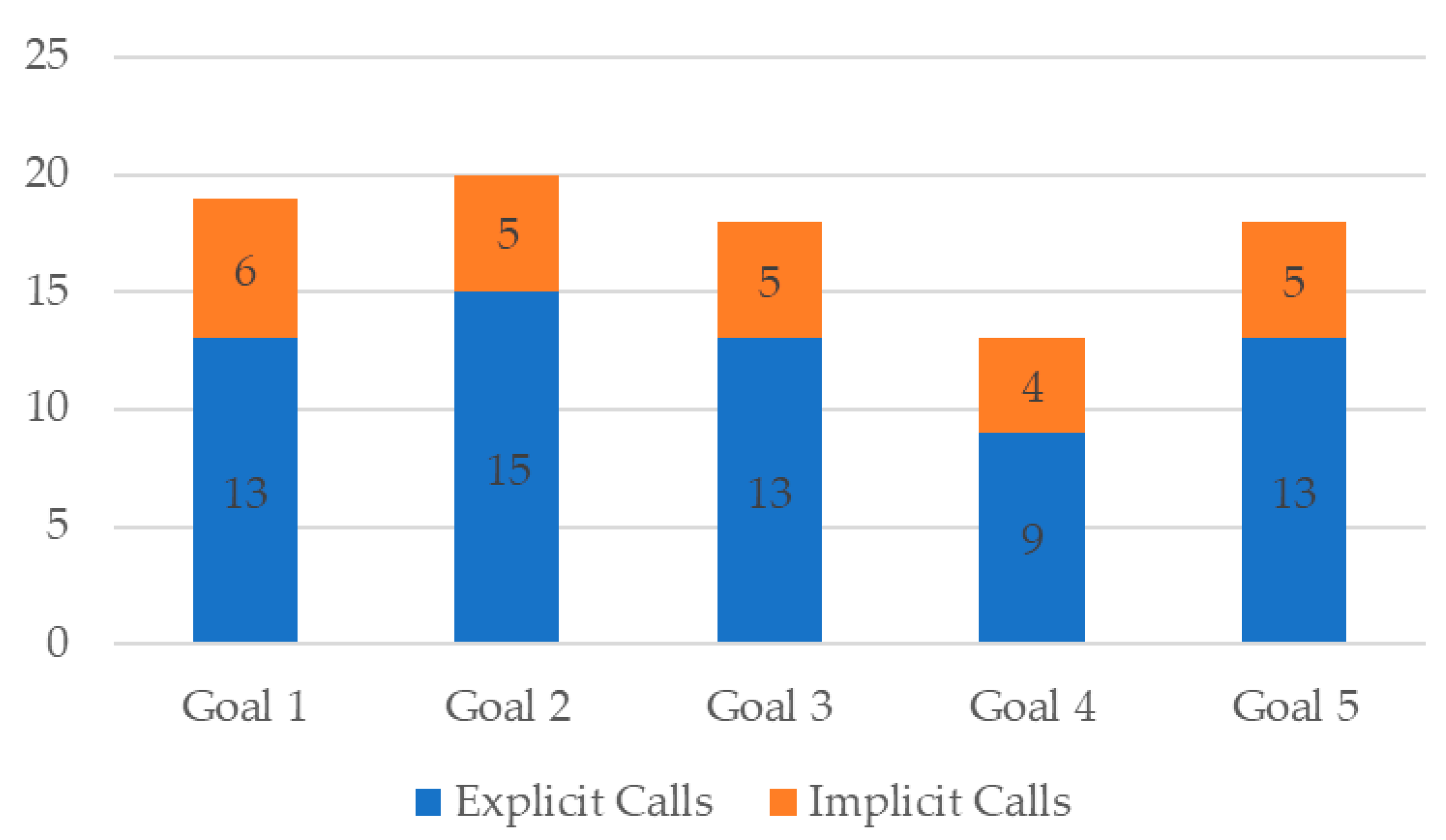 Figure 19 is the breakdown of explicit and implicit mentions of each of the goals. The distribution suggests that research has gravitated toward methodological and cultural dimensions of DE, areas where academia can directly contribute through conceptual development, case studies, and workforce training. The lower emphasis on infrastructure-related goals likely reflects barriers such as resource intensity, reliance on large-scale organizational investment, and limited accessibility of enterprise-level digital ecosystems within academic settings. Overall, the findings indicate that while the DoD Strategy has shaped research directions, particularly in advancing model-centric approaches and workforce transformation, its influence has been uneven across the five goals. This highlights both the alignment of academia with certain strategic priorities and the gaps where further engagement is needed.