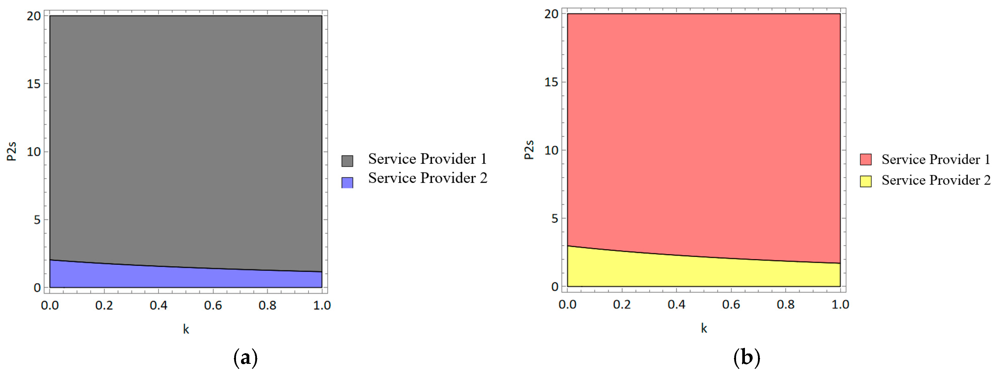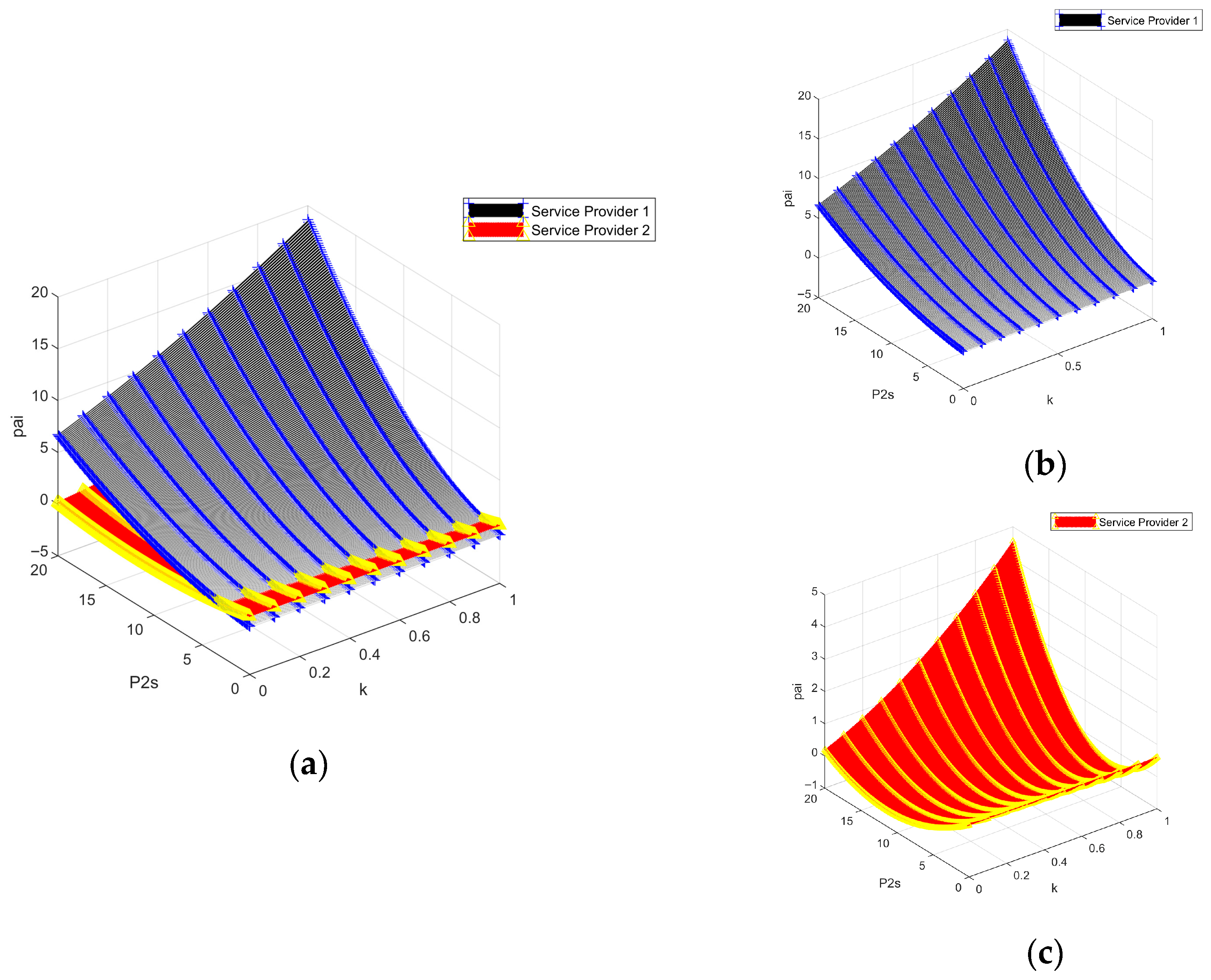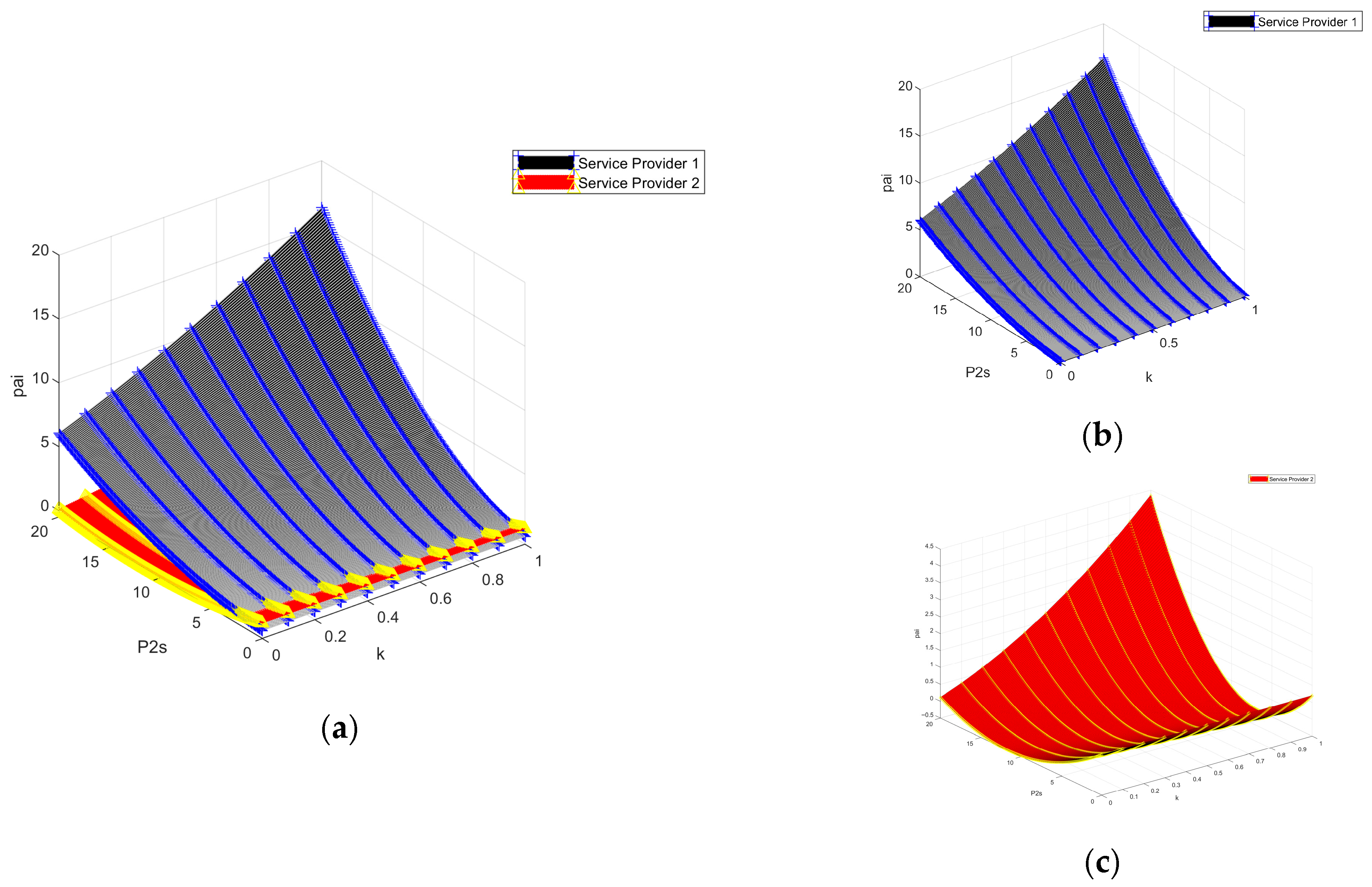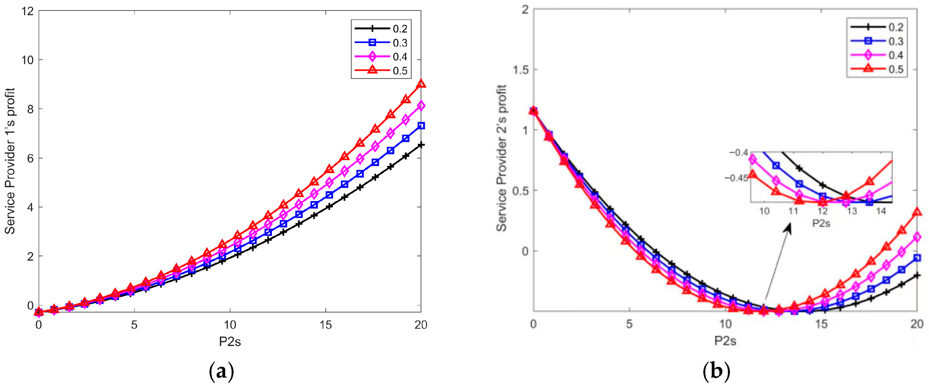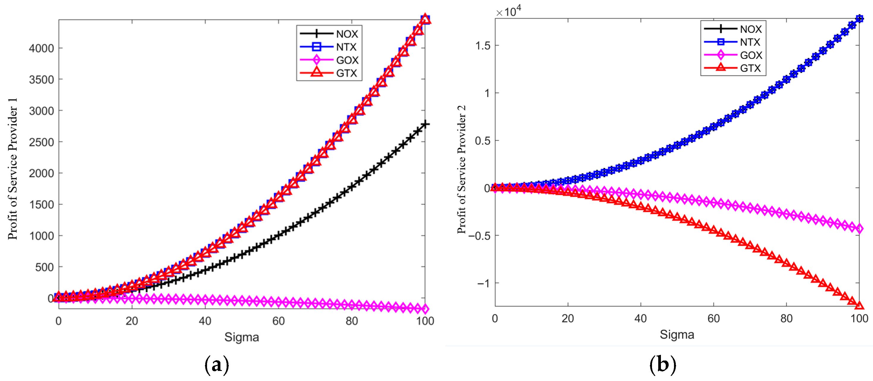6.3. Impact of Different Modes on Service Providers’ Profits