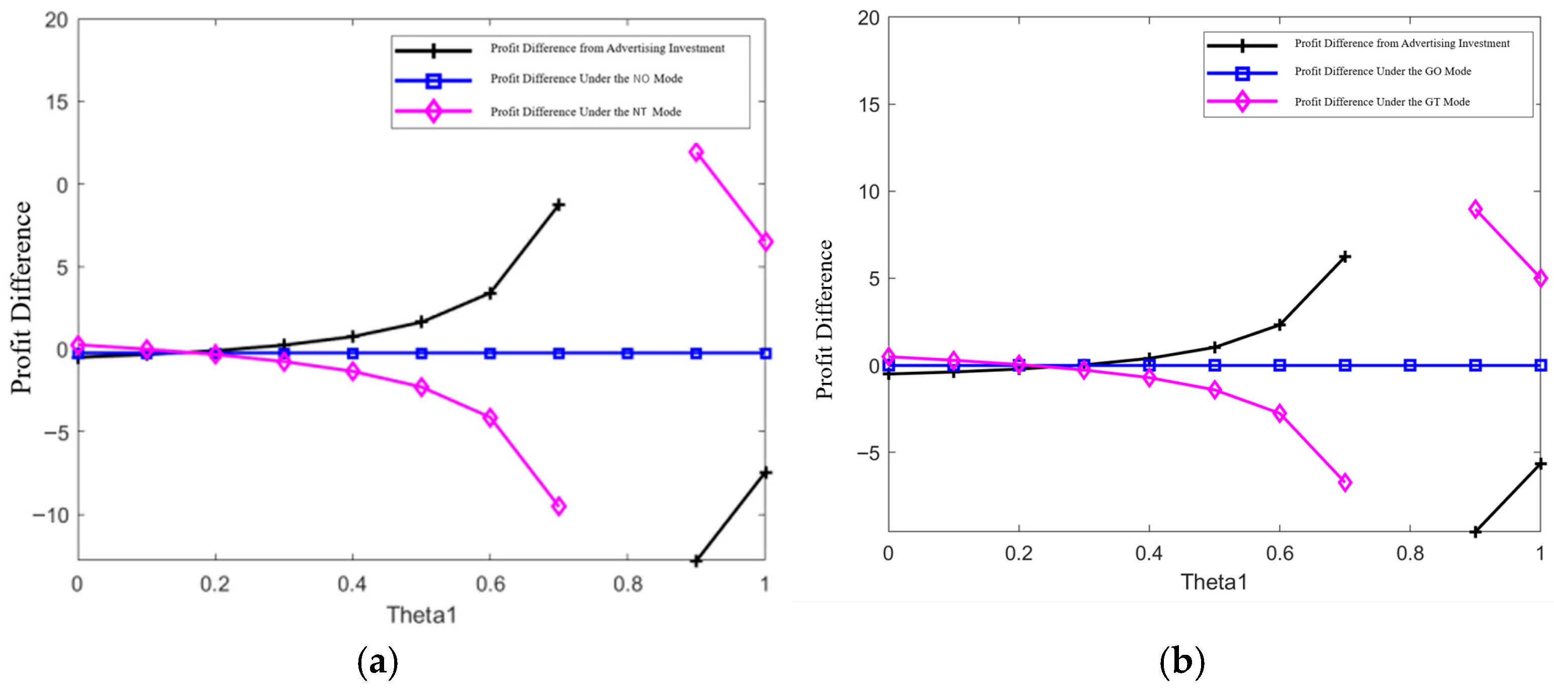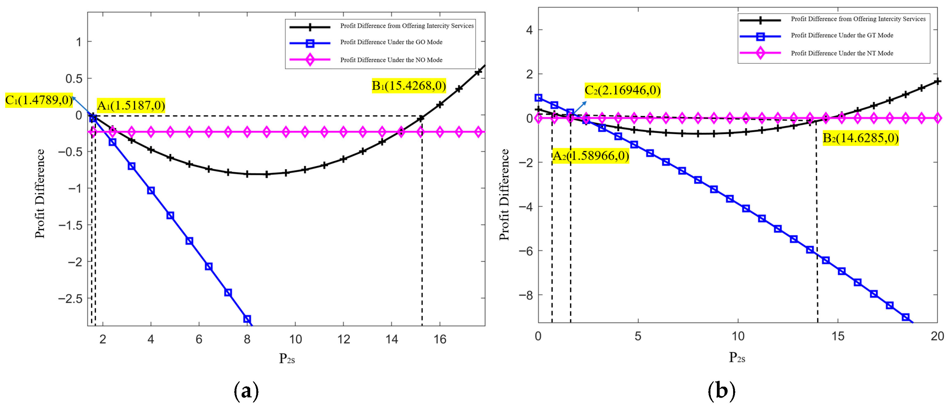 6.2. Impact of Different Modes on the Profit Difference Between Service Providers