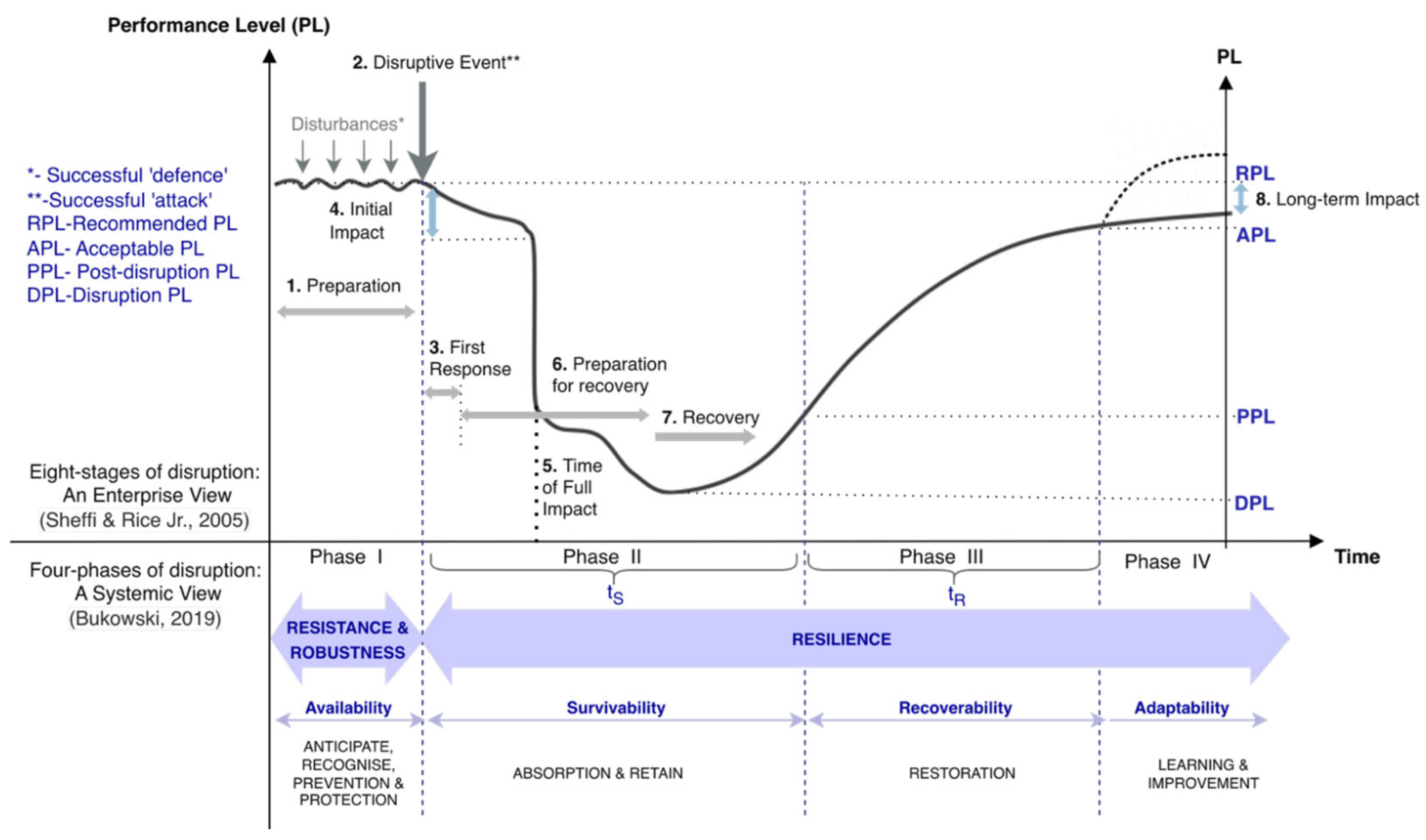 - Adaptation (learning and structural change, potentially exceeding pre-disruption performance or prompting re-engineering if adaptation fails).