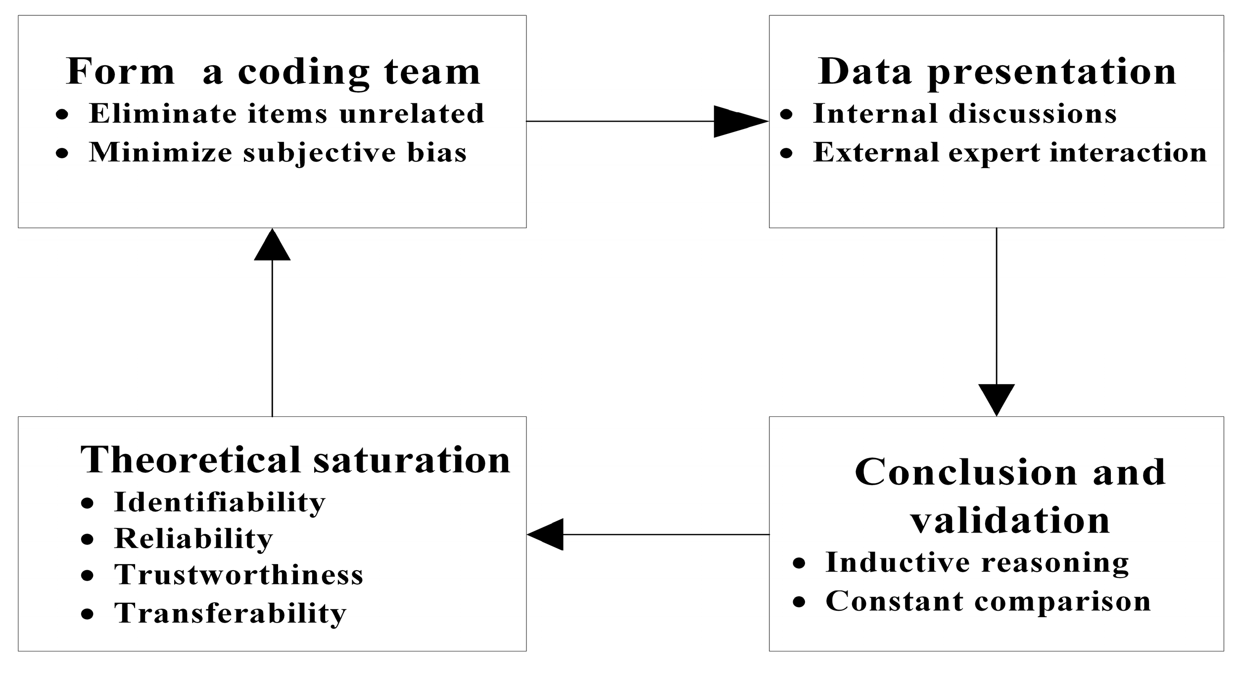 First, a coding team was formed: To minimize subjective bias in coding, the two authors jointly formed this team. During the coding process, the two coders carefully reviewed materials to eliminate items unrelated to the research topic and explained the problematic components through discussion, thus reducing potential errors.