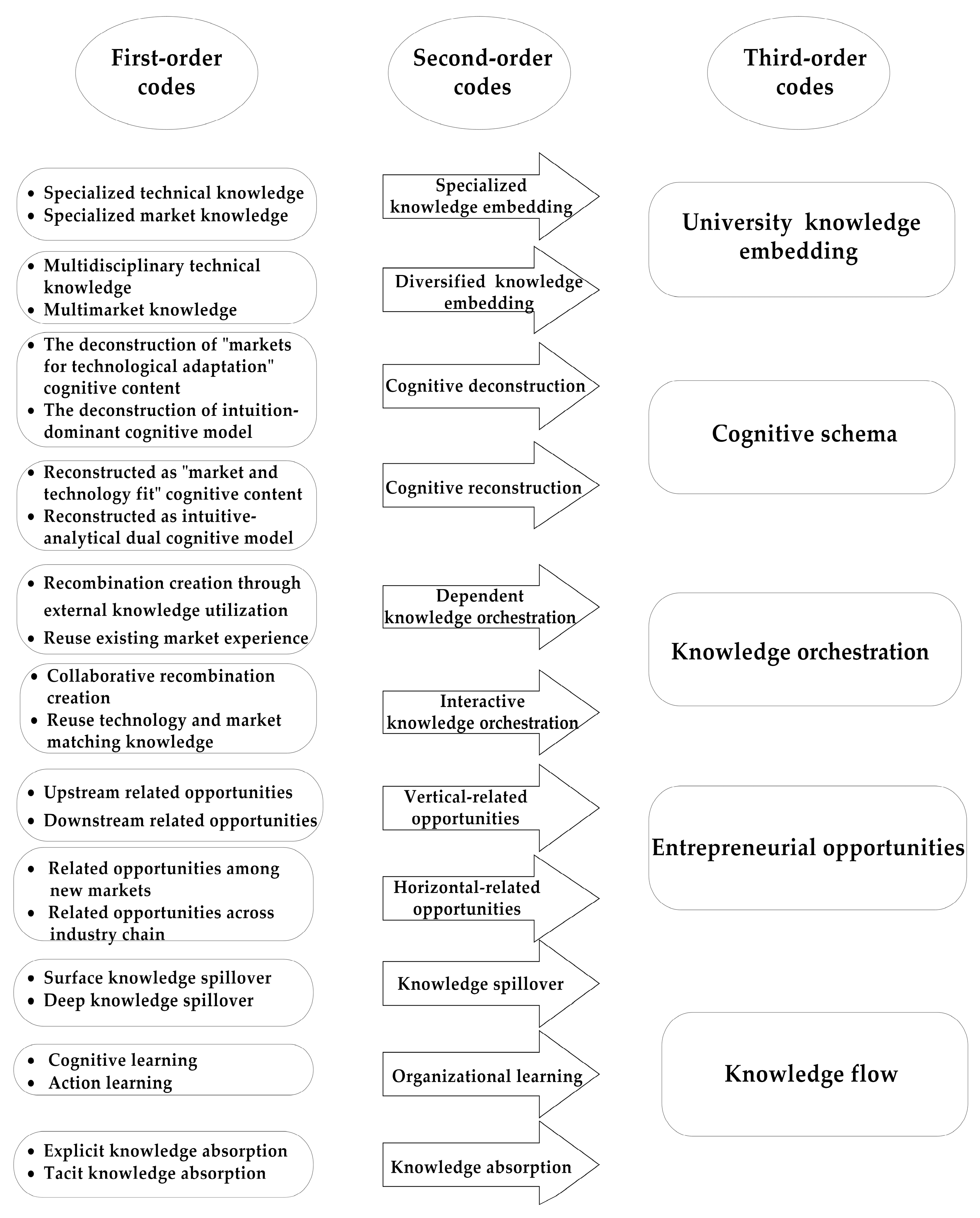 Third, the failure to unpack the micro-level “mechanisms of action” has resulted in the endogenous growth process remaining largely unexamined []. Much of the literature has mainly focused on establishing a correlation between the input of university knowledge and rural economic outcomes [], without revealing the micro-level mechanisms that transform external intervention into endogenous growth. While researchers have identified the “input”-the embeddedness of university knowledge-and the “output” -endogenous growth, they have not unraveled the intricate mechanisms that link external interventions to the formation of endogenous growth. In particular, the literature fails to clarify the causal chain and nonlinear interactions through which university knowledge reshapes local actors’ cognitive models, thereby stimulating their knowledge orchestration behaviors and ultimately driving the exploitation of entrepreneurial opportunities. A deeper analysis of these micro-level cognitive models and knowledge-related actions is necessary to explain how externally embedded resources are internally transformed to generate sustainable, endogenous motivation for development within rural regions.