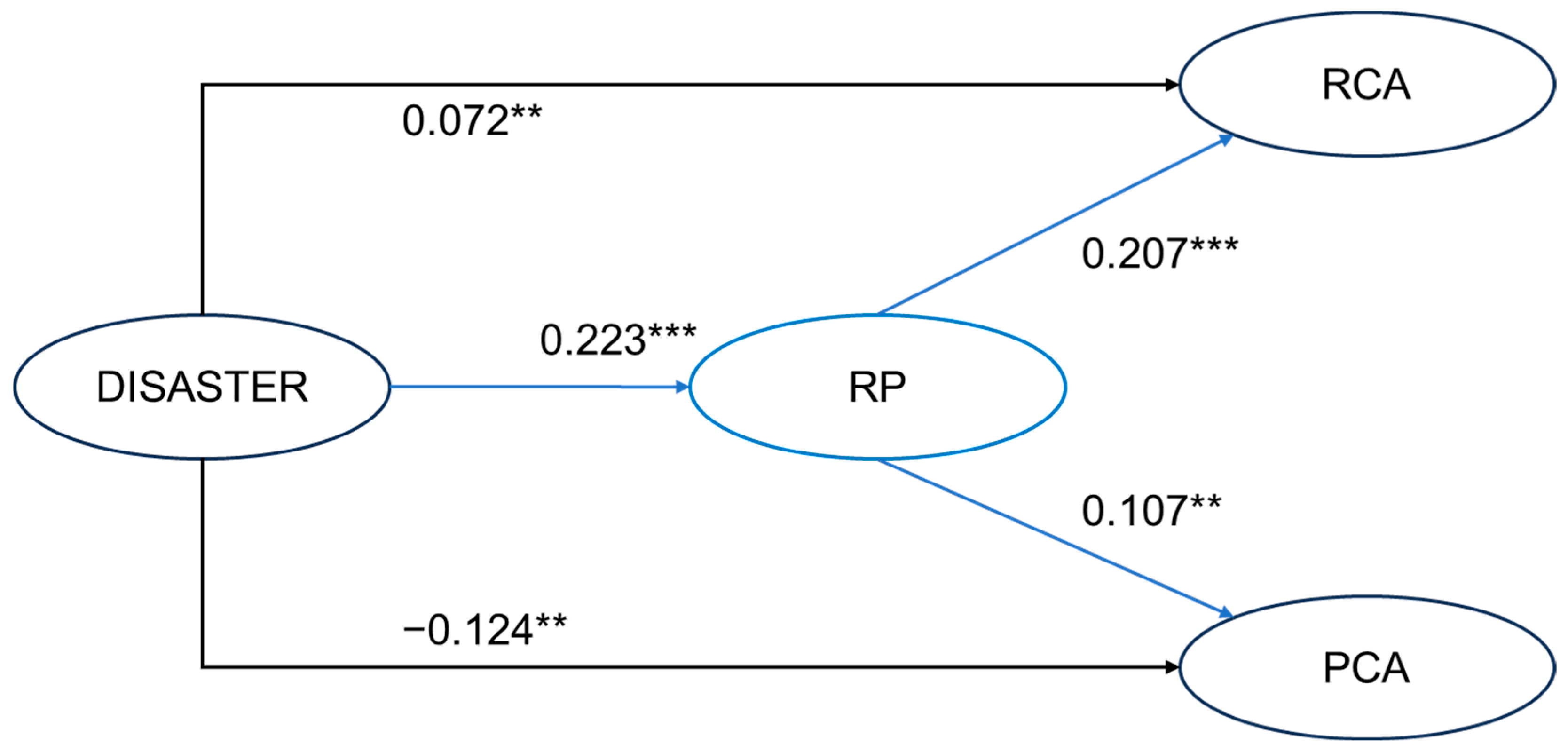 | Disaster → Risk Perception → RCA | 0.046 | 0.025 | 0.074 |