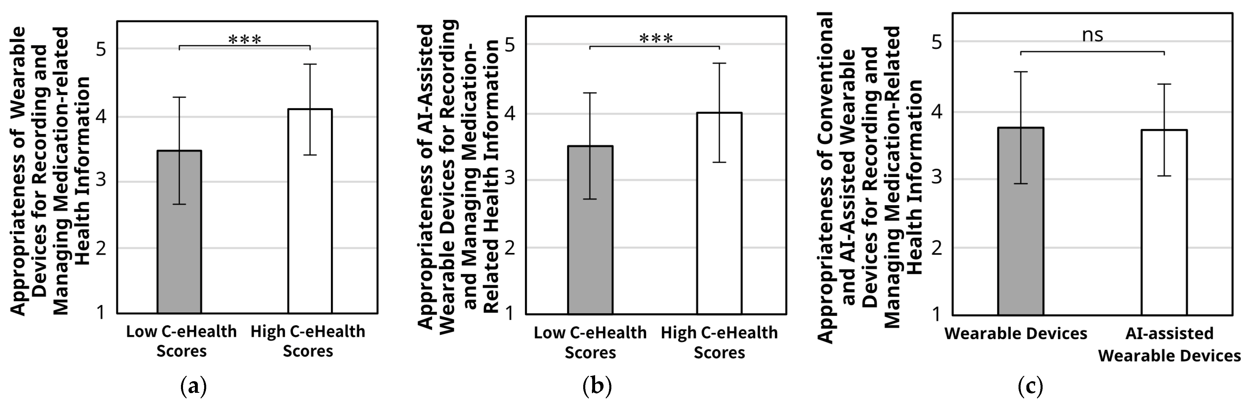 3.4.1. Whether Wearable Devices or AI-Assisted Wearable Devices Are Appropriate for Recording and Managing Medication-Related Health Information