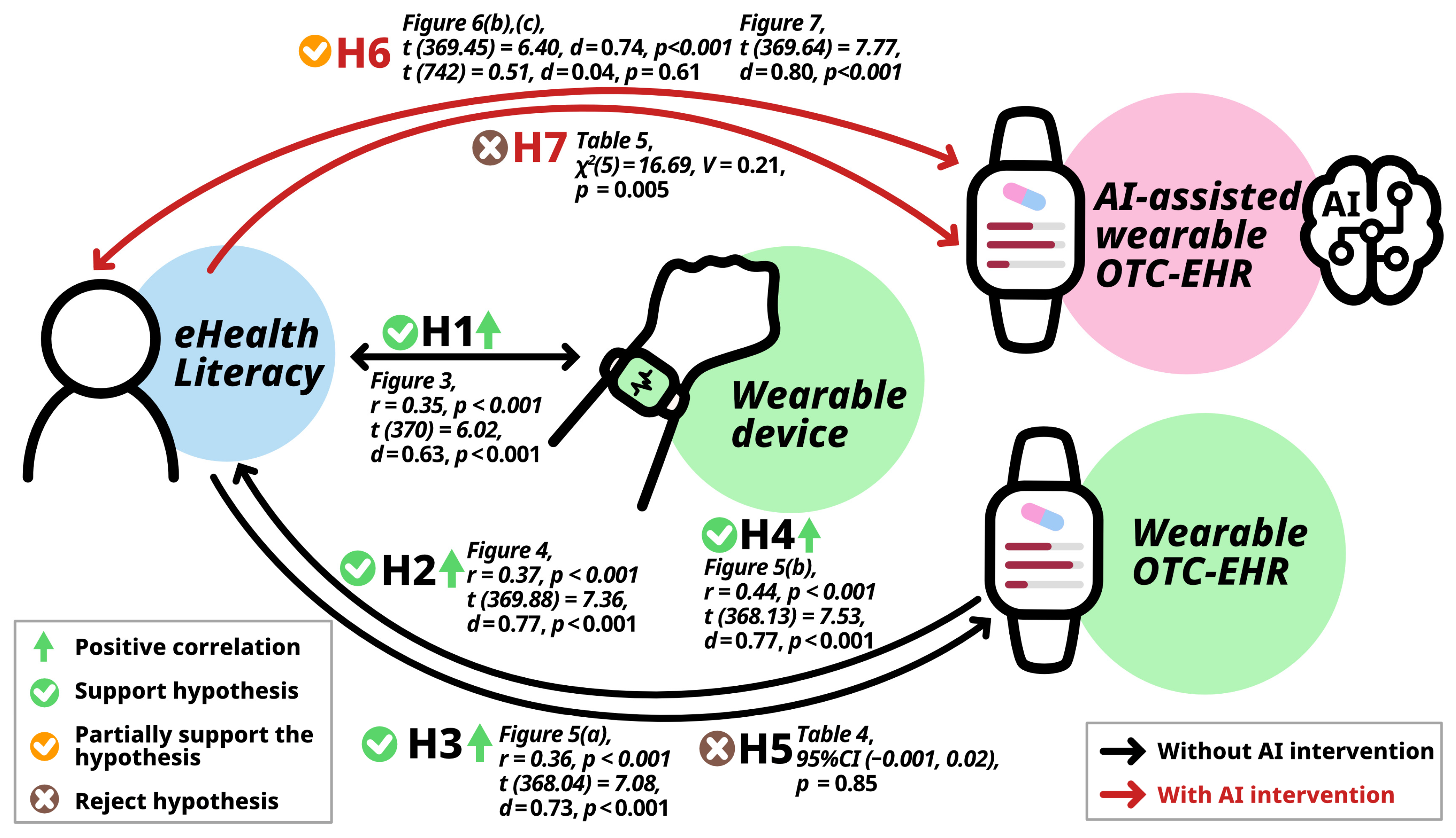 Tang, G.; Xu, Z.; Koyama, S. eHealth Literacy, Attitudes, and Willingness to Use an Artificial Intelligence-Assisted Wearable OTC-EHR System for Self-Medication: An Empirical Study Exploring AI Interventions. Systems 2025, 13, 1070. https://doi.org/10.3390/systems13121070
