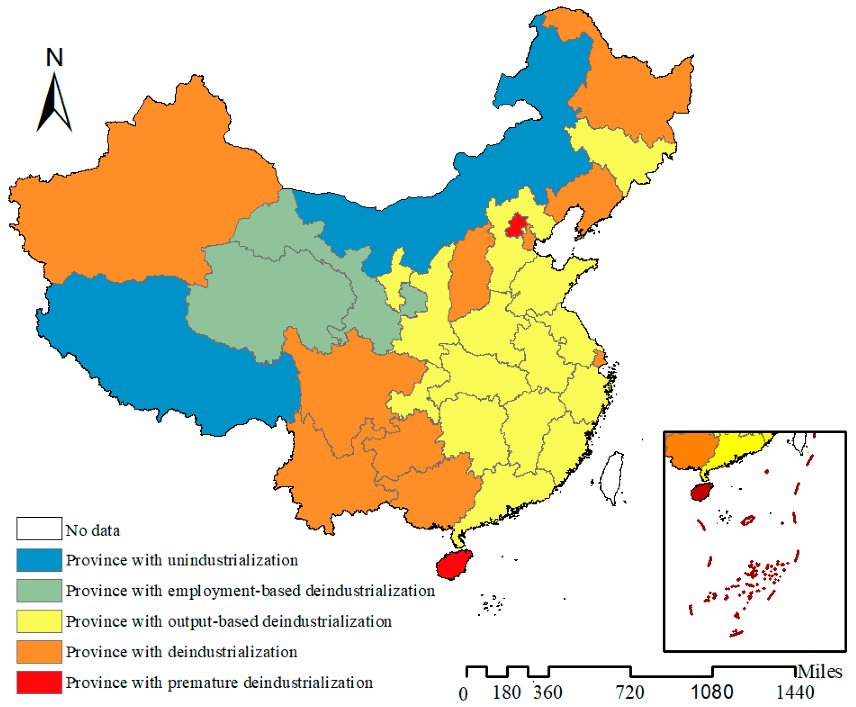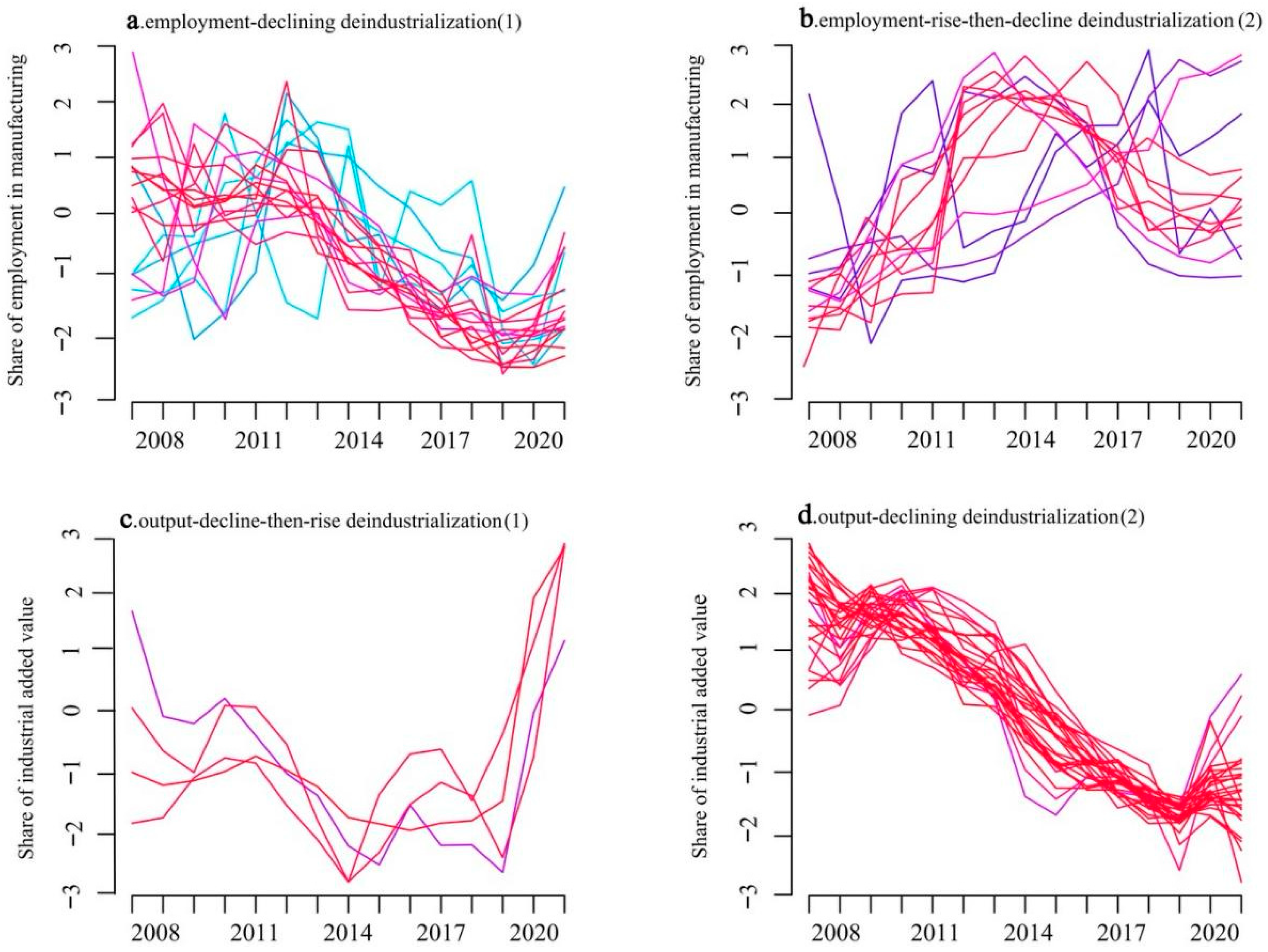 3. The Spatiotemporal Characteristics of Deindustrialization in China