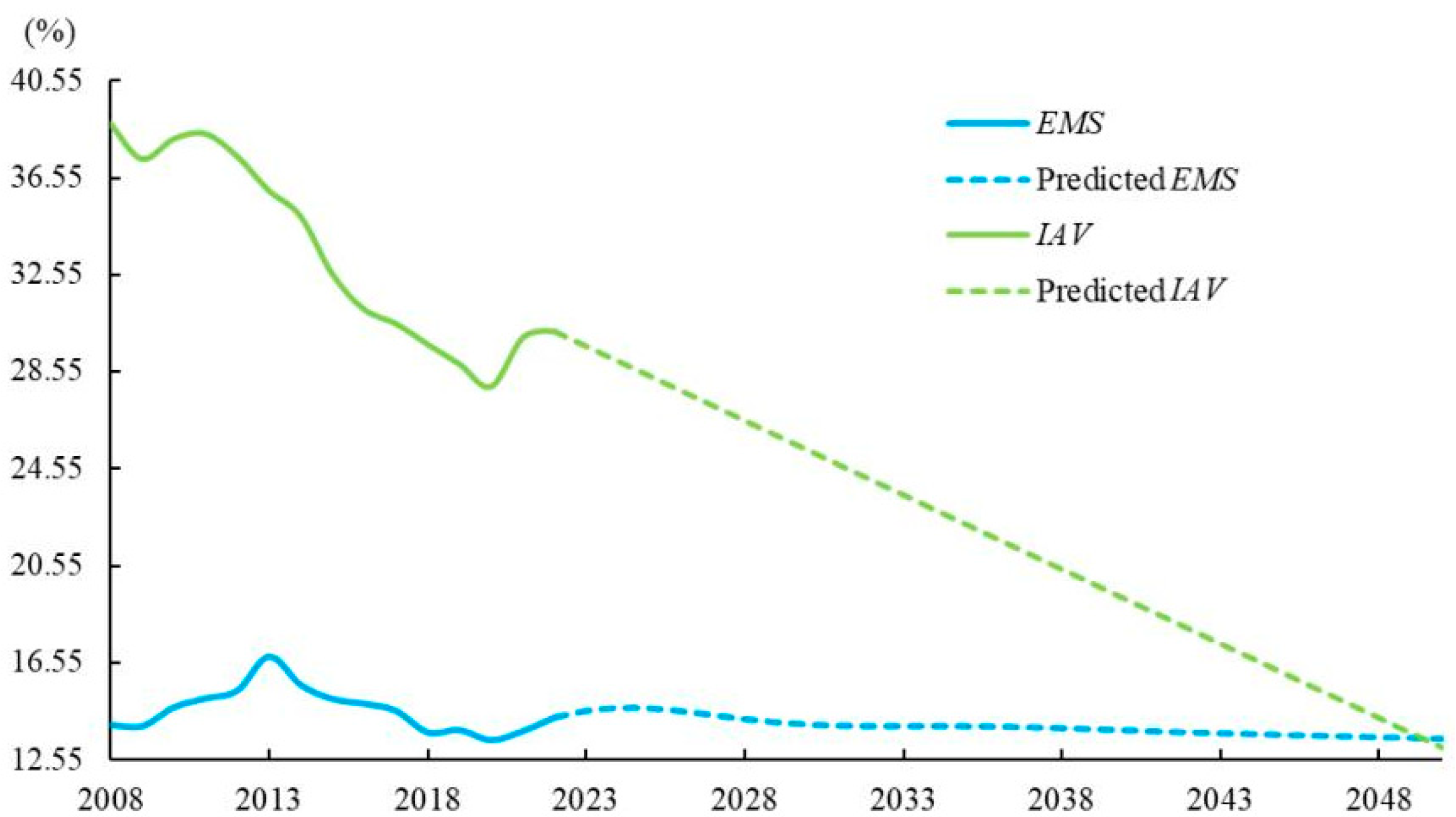 | Employment in the manufacturing industry as a share of secondary and tertiary industries (%) | EMS | 465 | 14.70 | 7.90 | 3.23 | 40.79 |