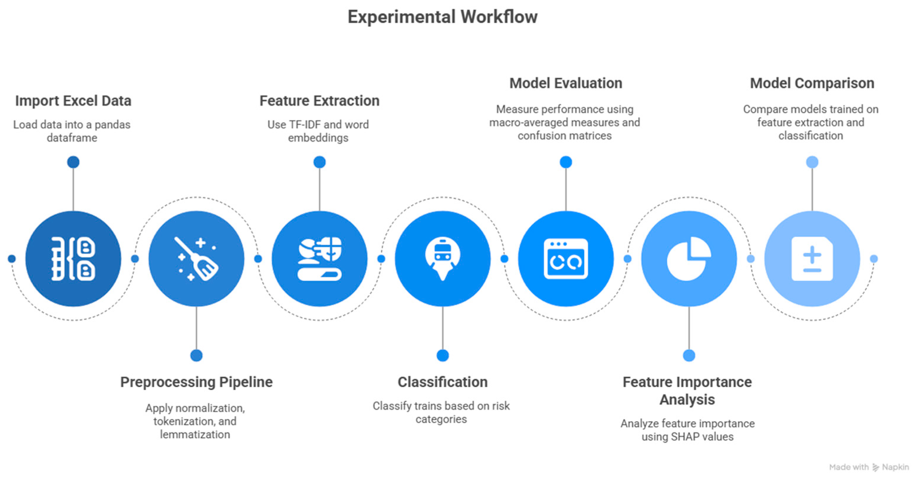 - Perform comparative study on two popular feature extraction methods—TF-IDF and Word Embeddings—together with a set of machine learning models such as Logistic Regression, Support Vector Machines, Random Forest, XGBoost, and Naive Bayes to determine the relative performance of each pair under different risk classification problems.