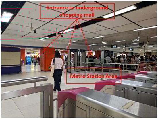With the acceleration of urbanization, metro systems not only serve as the backbone of urban transportation but are increasingly integrated with commercial developments, forming complex multifunctional buildings [,]. As shown in Figure 1, some metro stations have evolved into hubs that combine transport functions with retail spaces, offices, and public services, generating significant economic and social value [].