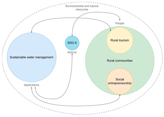 SDGs 6, 8, and 13 have become guiding principles for the responsible planning and management of tourism. In particular, SDG 6 holds special relevance for rural areas with a tourism vocation, where water management symbolises a basic right for environmental preservation [40]. Integrating this goal into rural life strengthens water governance, understood as a common good, to promote management models that ensure its continued availability and quality.