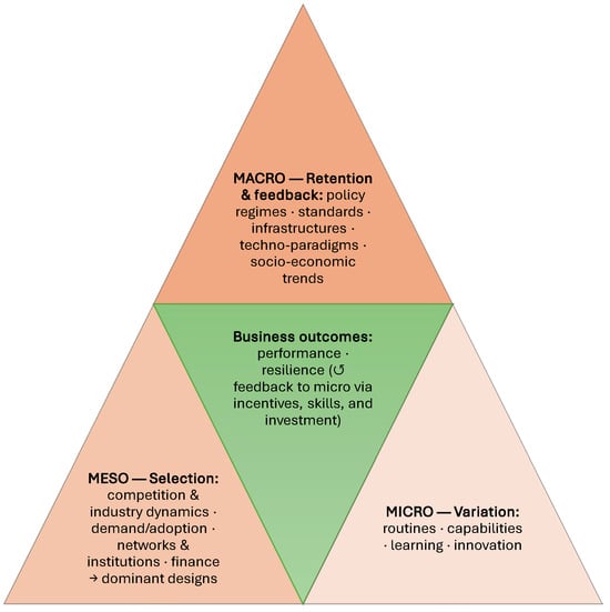 - Chatzinikolaou, D.; Kubus, R. Macro–Meso–Micro: An Integrative Framework for Evolutionary Economics and Sustainable Transitions. Sustainability 2025, 17, 9480. [Google Scholar] [CrossRef]