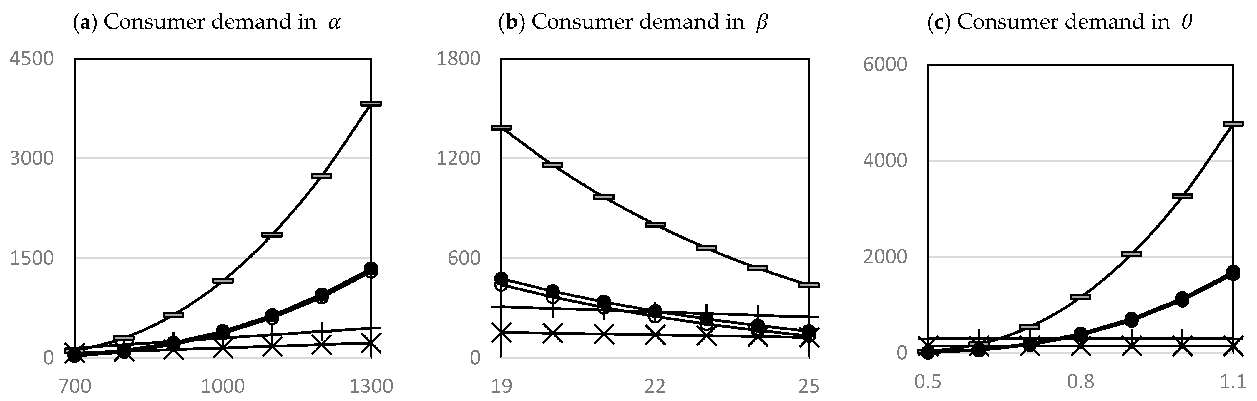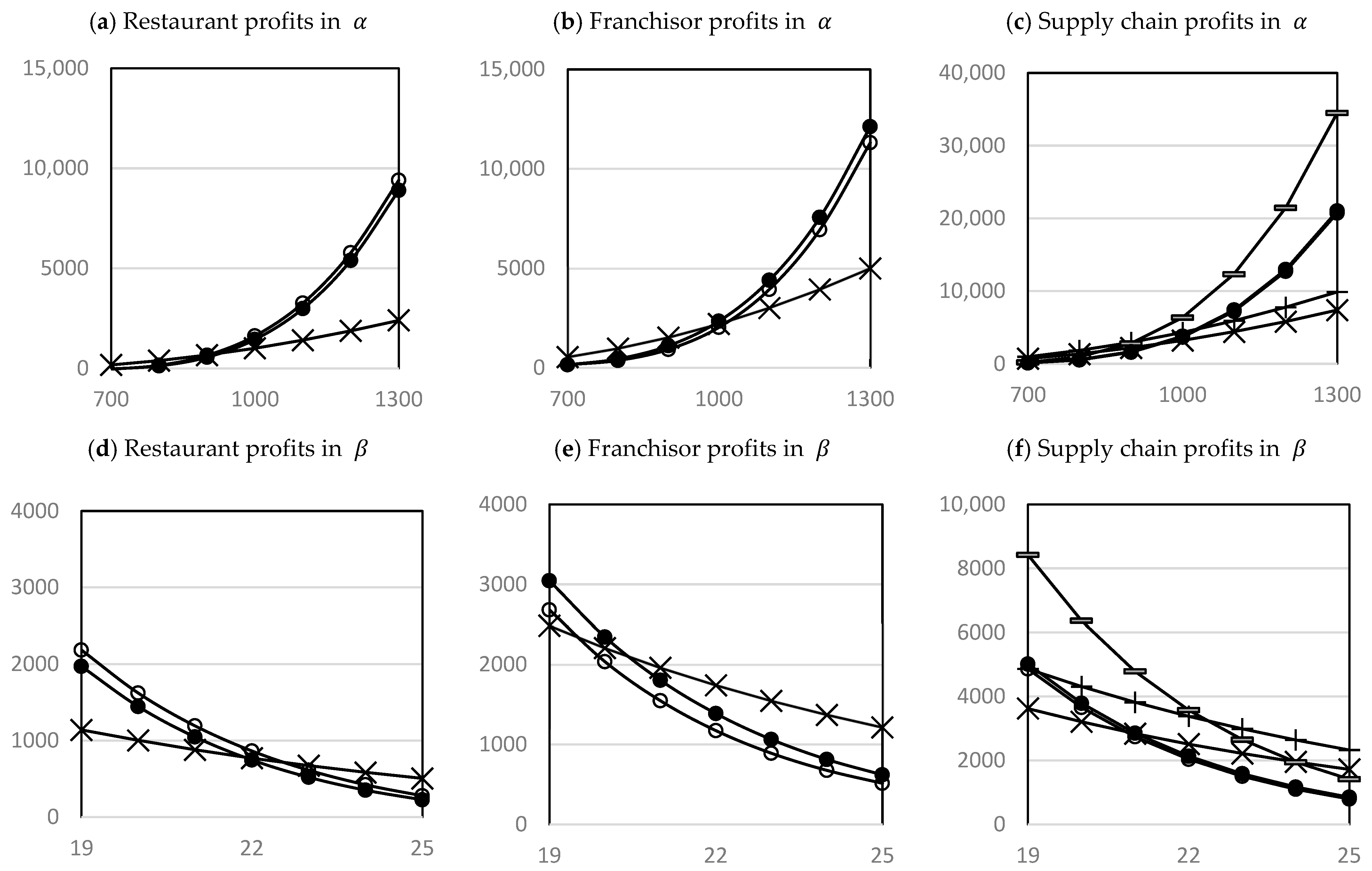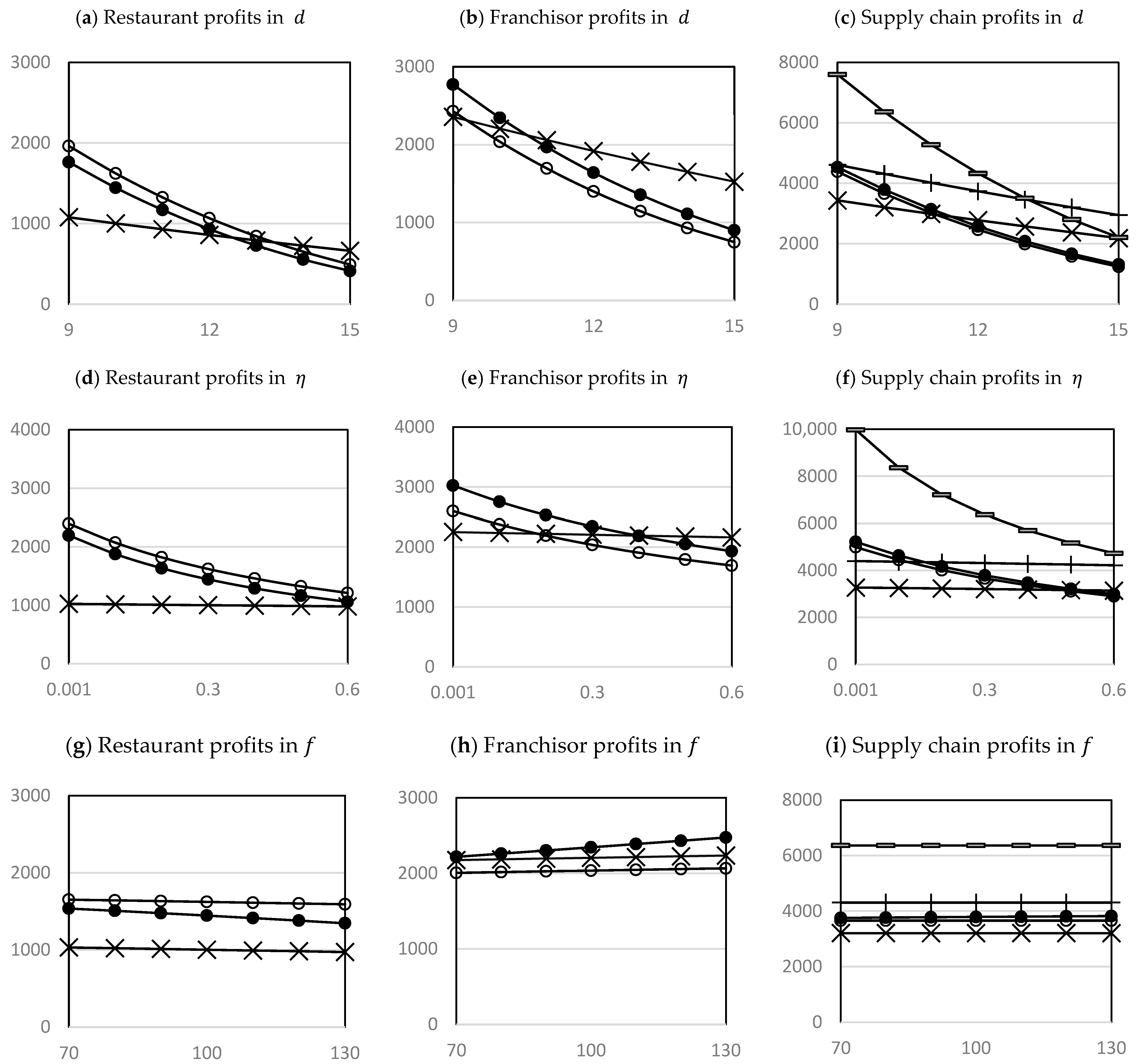 Proposition 1 indicates that the decentralized single-brand restaurant supply chain (Case SD) induces a higher sales price p compared to an integrated supply chain (Case SF), and hence it induces a lower demand q. The lowered demand caused by the price increase in the decentralized supply chain system would lead to inefficiency and lower the supply chain’s entire profit. This comparison highlights that the inefficiency arises from the lack of coordination between the franchisor and the restaurant in decentralized decision making. We will see this by applying a numerical example in the next section.