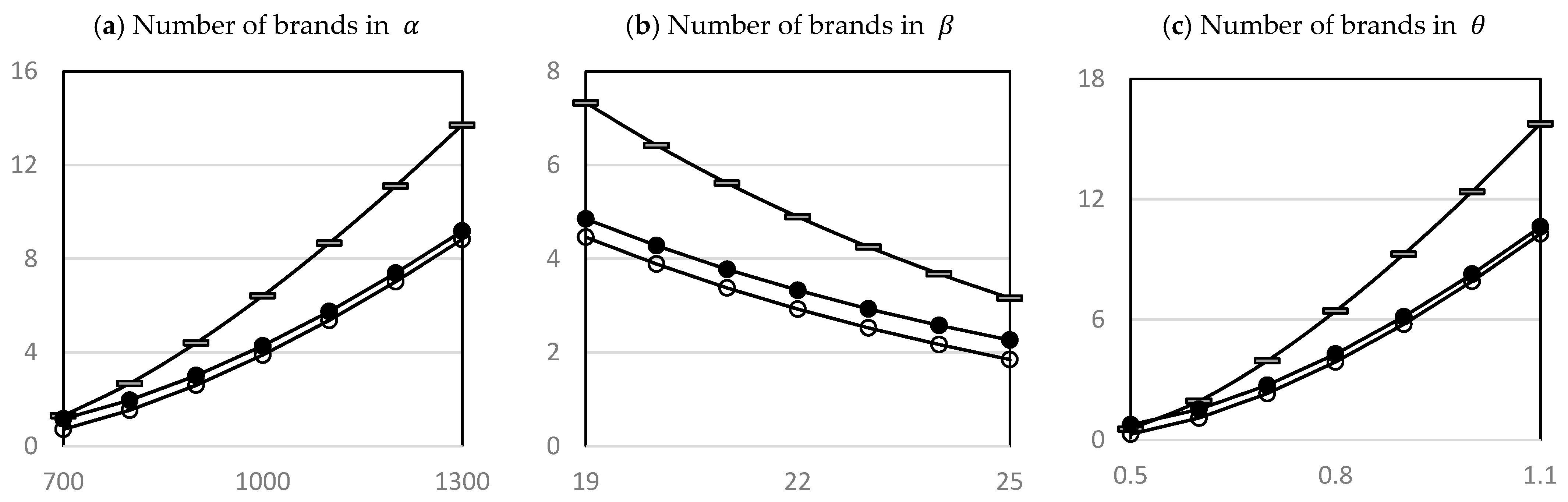 The result of the number of brands n implies that Case MN can yield better supply chain resilience and environmental performance. By consolidating a greater number of brands, the multi-brand strategy of Case MN can enhance supply chain resilience by pooling demand risks and enabling substitution across brands within a shared operational platform. Case MN can also reduce land use, energy, water consumption, and food waste by streamlining restaurant operations across more brands and optimizing ingredient utilization and order delivery.
