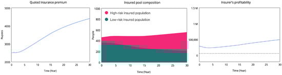 Given this reality, it becomes essential to study the underlying mechanisms behind insurance and offer citizens the best possible product, which ensures that they not only receive a high degree of protection on a sustained basis but also receive the help they need to improve their health outcomes. As mentioned earlier, there is also the concern that if the commercial health-insurance market is not well-organized, it could spark a high rate of inflation in the healthcare market [13], which could have a negative feedback effect on the quest for UHC for a low- and middle-income country (LMIC) like India. In this paper, we study these behavioral regularities—low penetration, rising premiums, and underwriting losses—and test alternative policies using a dynamic model capable of reproducing these patterns and stress-testing counterfactuals.