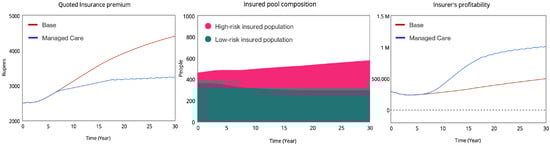 Most low- and middle-income governments are unwilling and unable to adequately fund their health systems using tax resources. Despite this route’s popularity in public discourse, it is neither a feasible nor a desirable route for financing Universal Health Coverage (UHC), given competing public finance priorities and limited citizen demand, among other challenges. It thus becomes essential to study the underlying mechanisms behind commercial health insurance and offer citizens the best possible product, which ensures that they not only receive a high degree of protection from health and financial risk on a sustained basis but also find reasonable access and support to improve their health outcomes. In this paper, we build a system-dynamics model that simulates the aggregate behavior of the Indian health-insurance industry, with interacting feedbacks between decisions by stakeholders such as the insurer, healthy and chronically ill populations, and the regulator to outcomes like insurance penetration among segments, overall coverage, health status over the long run, a mechanism of market-discovered premium, and financial viability of the private insurer. We then investigate policy choices and scenarios to explore contrast between design choices and ideal or targeted states of this market, such as a market with 100% enrollment, risk selection by insurers, group insurance models, and managed care, and study the impact on our outcomes of interest, i.e., insurance penetration and pricing, the financial sustainability of the insurers, and the population’s health outcomes. The simulations show that even while insurers and the different population segments optimize for their respective near-term objectives, the best outcomes for all come from the managed-care policy option, which has greater insurance penetration, lower premiums, higher profitability for insurers, and better long-term health outcomes. All other choices and scenarios yield suboptimal, imbalanced systemic outcomes. We thus recommend managed care as a desirable policy alternative for low-income countries intending to improve UHC by leveraging commercial health insurance.