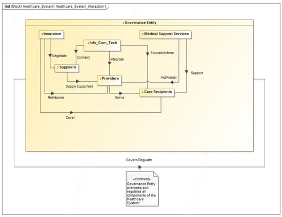 Internal Block Diagram (IBD): Operational Interactions Among Healthcare System Categories Under Governance Oversight. Adopted from [29].