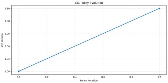 Figure 4 depicts the incremental adaptation of CIC policies across iterations. The x-axis represents policy iterations, while the y-axis reflects the versioning of the CIC. The linear progression from version 1.00 to 1.10 demonstrates how governance mechanisms evolve incrementally in response to operational feedback, recorded violations, or emerging systemic needs. Technically, this progression is triggered by feedback loops embedded in the simulation: violations, audit outcomes, or performance degradations flag the need for contract revision, which then increments the CIC version. Each policy iteration incorporates lessons learned from prior enforcement and system performance, thereby enabling continuous improvement. Conceptually, this evolution underscores the dual role of CICs: they serve as externalized constraints that enforce compliance, while simultaneously functioning as adaptive governance instruments capable of continuous refinement. This shows the model successfully captures a feedback loop where the state of the SoS directly influences the evolution of its own governing covenant, enhancing the overall system’s resilience and ability to manage complexity. Consequently, the figure reinforces the idea that CIC-based governance supports not only compliance assurance but also sustainable adaptability within complex healthcare SoS.