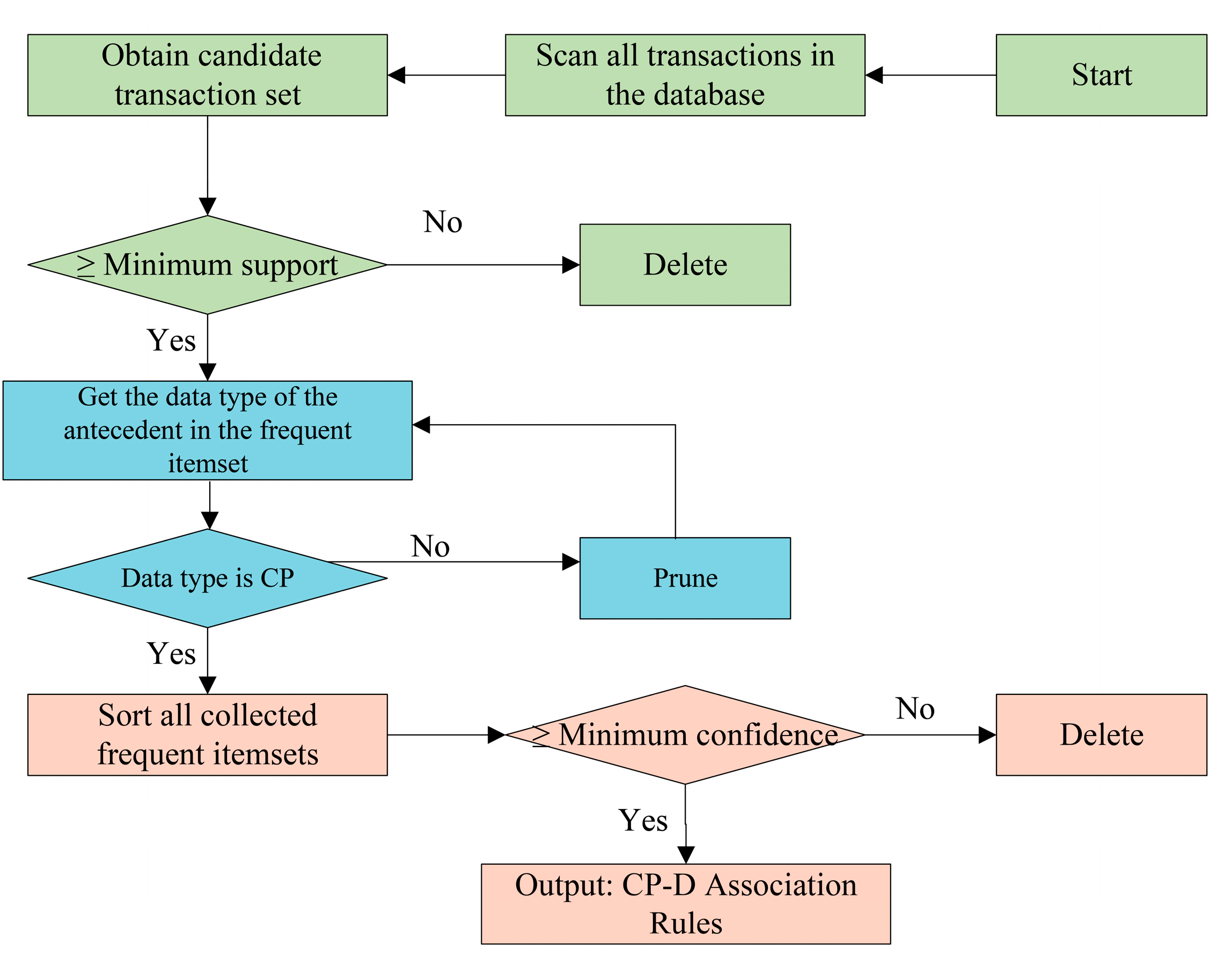 Compared with the aforementioned methods, Association Rule Mining (ARM) can efficiently identify high-frequency patterns in large-scale manufacturing datasets, quantify association strength between production factors using multiple metrics, and visually reveal causal relationships within structurally complex multi-level networks. Due to these strengths, ARM has been successfully applied in domains such as power system fault analysis [