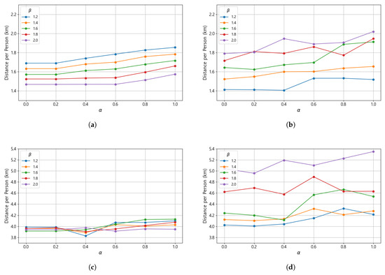 Candidate primary shelters, represented by the set J, were identified through spatial inspection of Google Earth and Naver Map satellite imagery [80,81]. A total of 235 candidate sites () were identified across the study area. These shelters are defined as outdoor spaces that can be reached on foot from nearby residential areas, providing immediate refuge during the early phase of a wildfire. Typical examples include community centers, parking lots, schoolyards, small parks, and public plazas located within or near residential zones. Their primary role is to ensure rapid and safe temporary protection while residents prepare for relocation to larger, more secure secondary shelters. The capacity of each primary shelter, denoted as , was estimated based on the open-space area measured from the same satellite imagery. The usable area for each site was converted into an estimated capacity based on the “Guidelines for the Designation and Management of Earthquake Outdoor Evacuation Areas” established by the Ministry of the Interior and Safety (MOIS) of South Korea [82]. These guidelines stipulate a minimum area of approximately 0.825 per person (calculated as 3.3 for 4 persons), which is specifically intended for short-term stays during earthquake evacuations. In this study, we adopted a standard of 1 per person, consistent with previous Korean evacuation analyses [83], which satisfies this government requirement while providing a slight margin. It is important to note that these shelters are designated primarily as temporary assembly points for immediate safety during the acute phase of a wildfire; thus, this high-density standard is feasible for short-term stays.
