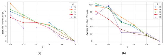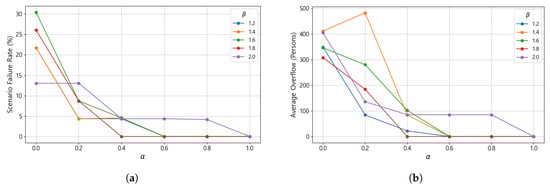 Constraints (5) and (6) impose capacity restrictions on primary and secondary shelters, respectively. The total number of evacuees assigned to a shelter cannot exceed its maximum capacity. The parameter represents a buffer ratio between 0 and 1 that accounts for the uncertainty of actual evacuee inflows through backup linkages. Because the number of residents who may eventually use backup routes cannot be precisely predicted due to wildfire-induced road blockages or shelter inaccessibility, a fraction of the population assigned to backup linkages is conservatively included in the capacity calculations to secure sufficient margin for possible emergency relocations under rapidly changing fire conditions.