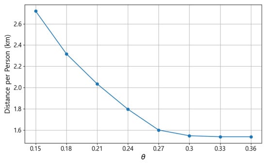 To validate the approximation of secondary evacuation distances, we analyzed a small-scale test instance. While total objective values exhibited high variability due to the small instance size, two key observations confirmed the structural validity of the model. First, the simplified model consistently prioritized closer primary shelters, effectively capturing the hierarchical evacuation logic. Second, we compared the approximated secondary evacuation distances utilized in the objective function against the actual travel distances corresponding to the derived evacuation plan. The analysis revealed that the deviation was approximately less than 5%. This high accuracy demonstrates that the simplified formulation provides a precise representation of the network, justifying its use for computationally tractable large-scale planning.