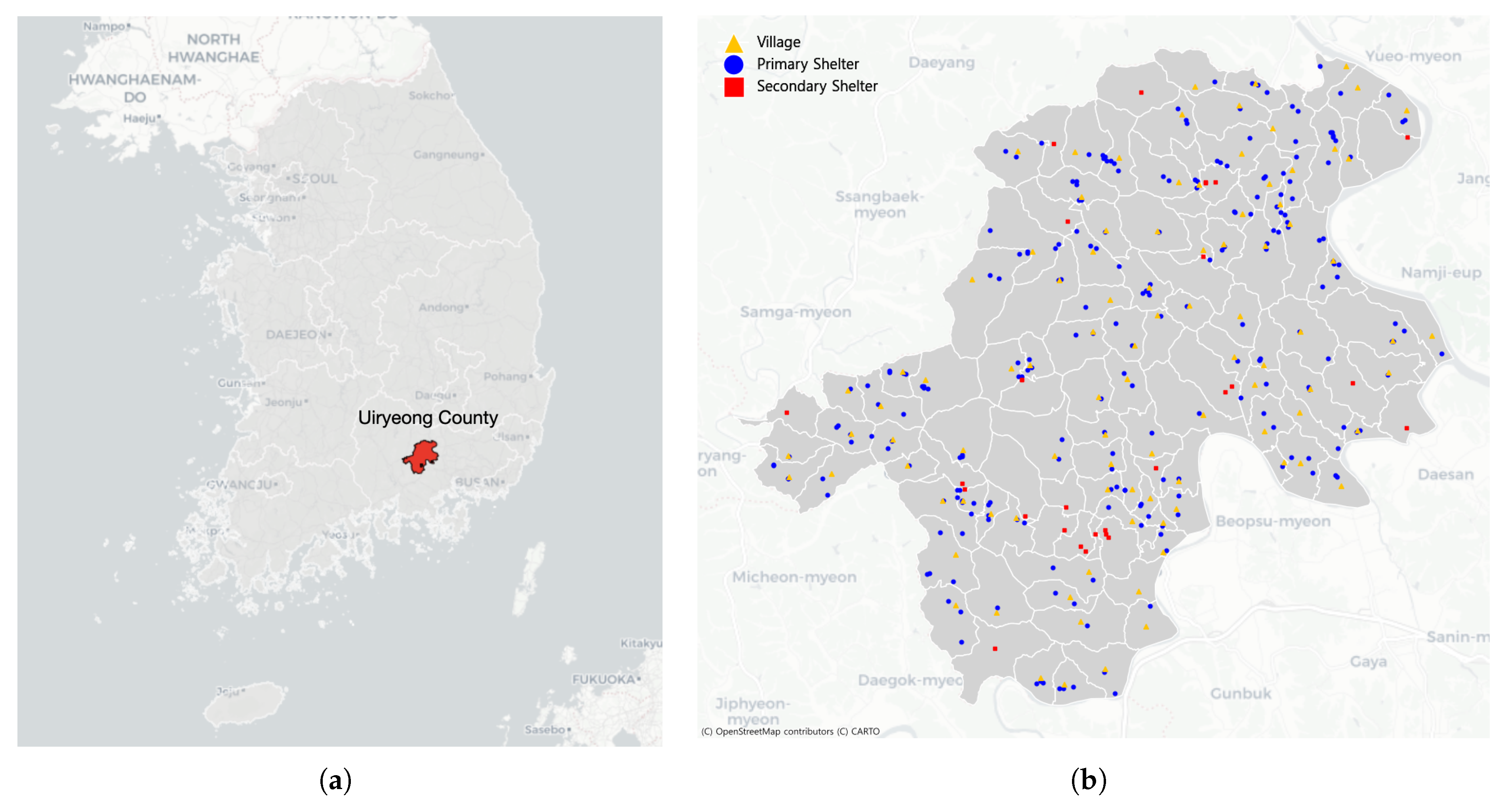 - Naver Map. Satellite Imagery of Uiryeong County, Gyeongsangnam-do, Republic of Korea. 2025. Available online: https://map.naver.com/ (accessed on 20 October 2025).
