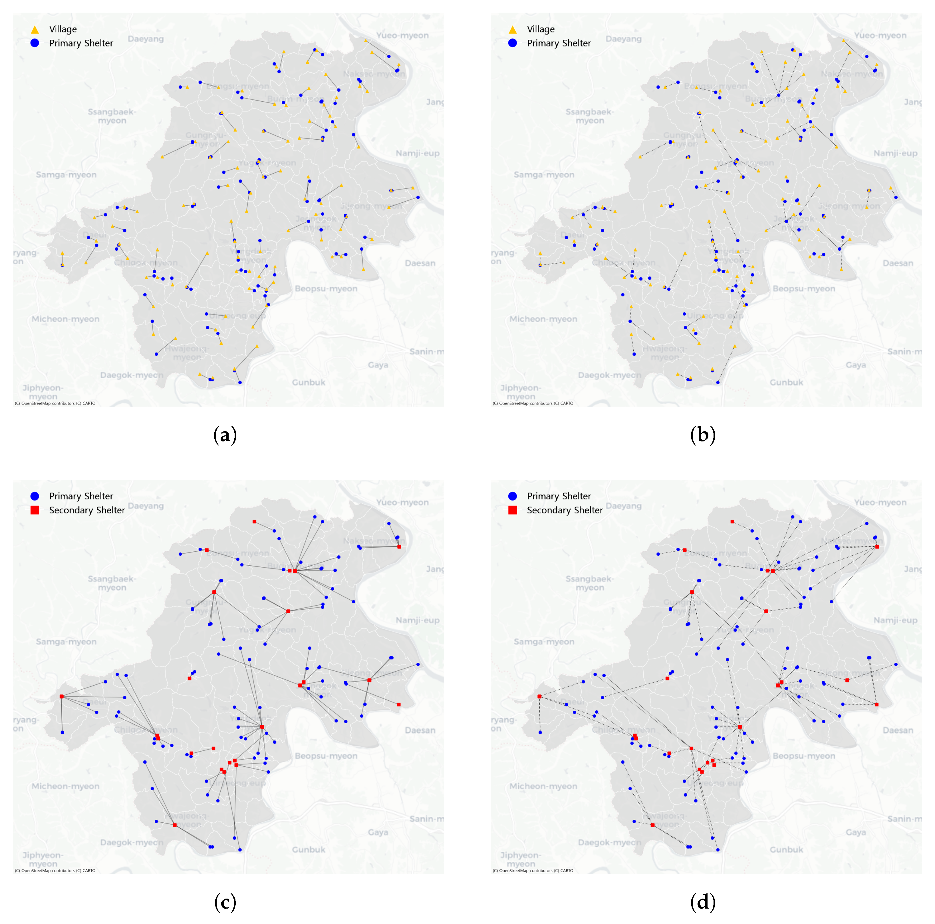 - Chang, K.H.; Pan, Y.J.; Chen, H. Shelter location–allocation problem for disaster evacuation planning: A simulation optimization approach. Comput. Oper. Res. 2024, 171, 106784. [Google Scholar] [CrossRef]