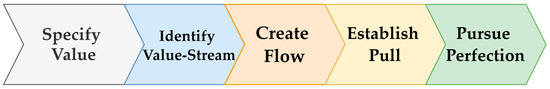 However, lean principles, known as the Toyota Production System (TPS), are considered the guidelines of lean manufacturing that aim to improve efficiency, eliminate waste, and create value in production processes. Adding to this perspective, the most well-known definition of lean principles passes through some major ones depending on value management. The first lean principle and the basis for all following principles is to specify the value as defined by the customer of the particular enterprise [7].
