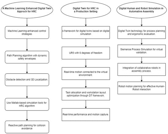 In manufacturing systems, several technological advancements in robotics systems have been shown as part of the development of the human–robot collaboration. The advancements focused on integrating robotics systems in terms of safety [25], the collaboration with humans in a shared workspace [26], in the context of HRC in automotive assembly to enhance safety and efficiency [27], and finally within the context of HRC in a production environment, focusing on continuous improvement and safety by optimizing HRC systems in the manufacturing sectors [28]. Figure 6: The use of robotics systems in the context of HRC summarizes the use of robotics systems in the context of HRC. It describes how each article adopted the use of robotics systems in the context of HRC by integrating cutting-edge technologies.
