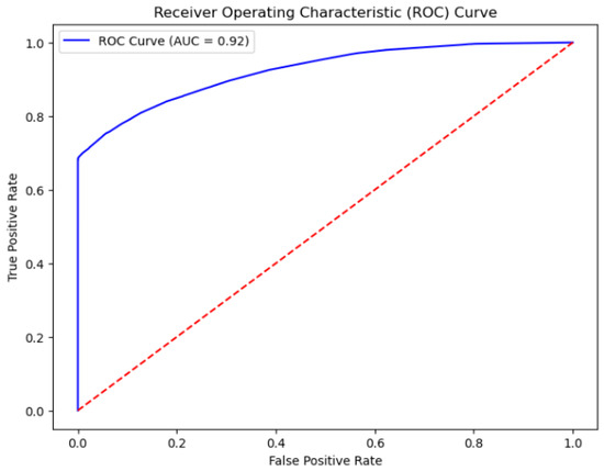 Finally, by plotting the ROC curve, we visually demonstrate the performance of the model at different thresholds, as shown in Figure 3. The ROC curve closely approaches the upper left corner, and the AUC value is as high as 0.93, proving the superior performance of the model in credit risk identification tasks and the necessity of using an intelligent identification model for personal credit risk factors for feature selection. This result not only provides strong support for credit institutions in identifying personal credit risk factors but also lays a solid foundation for our subsequent further evaluation of personal credit risk.