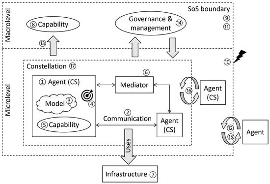 - Axelsson, J. An agent-based ontology to support modeling of socio-technical systems-of-systems. INCOSE Int. Symp. 2024, 34, 1705–1718. [Google Scholar] [CrossRef]