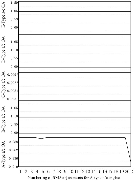 This analysis indicates that adjustments to OP actions generally exerted minimal impact on the OA of each aircraft type. For example, when the direct MX time for A-type aircraft was increased by 40%, the aircraft OA decreased to 98.85%; when the turnaround time for A-type aircraft was increased by 60%, the aircraft OA decreased to 97.31%.