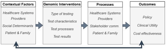 - Horowitz, C.R.; Orlando, L.A.; Slavotinek, A.M.; Peterson, J.; Angelo, F.; Biesecker, B.; Bonham, V.L.; Cameron, L.D.; Fullerton, S.M.; Gelb, B.D.; et al. The Genomic Medicine Integrative Research Framework: A Conceptual Framework for Conducting Genomic Medicine Research. Am. J. Hum. Genet. 2019, 104, 1088–1096. [Google Scholar] [CrossRef] [PubMed]